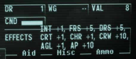 Модификация, предотвращающая возможные вылеты при загрузке из-за чрезмерно большого количества эффектов, используемых на предмете (броня, одежда, оружие, еда и т.п.), с помощью сокращения названий пассивных эффектов, отображаемых на Пип-бое. Это даст возможность использовать увеличенное число эффектов на предмете.