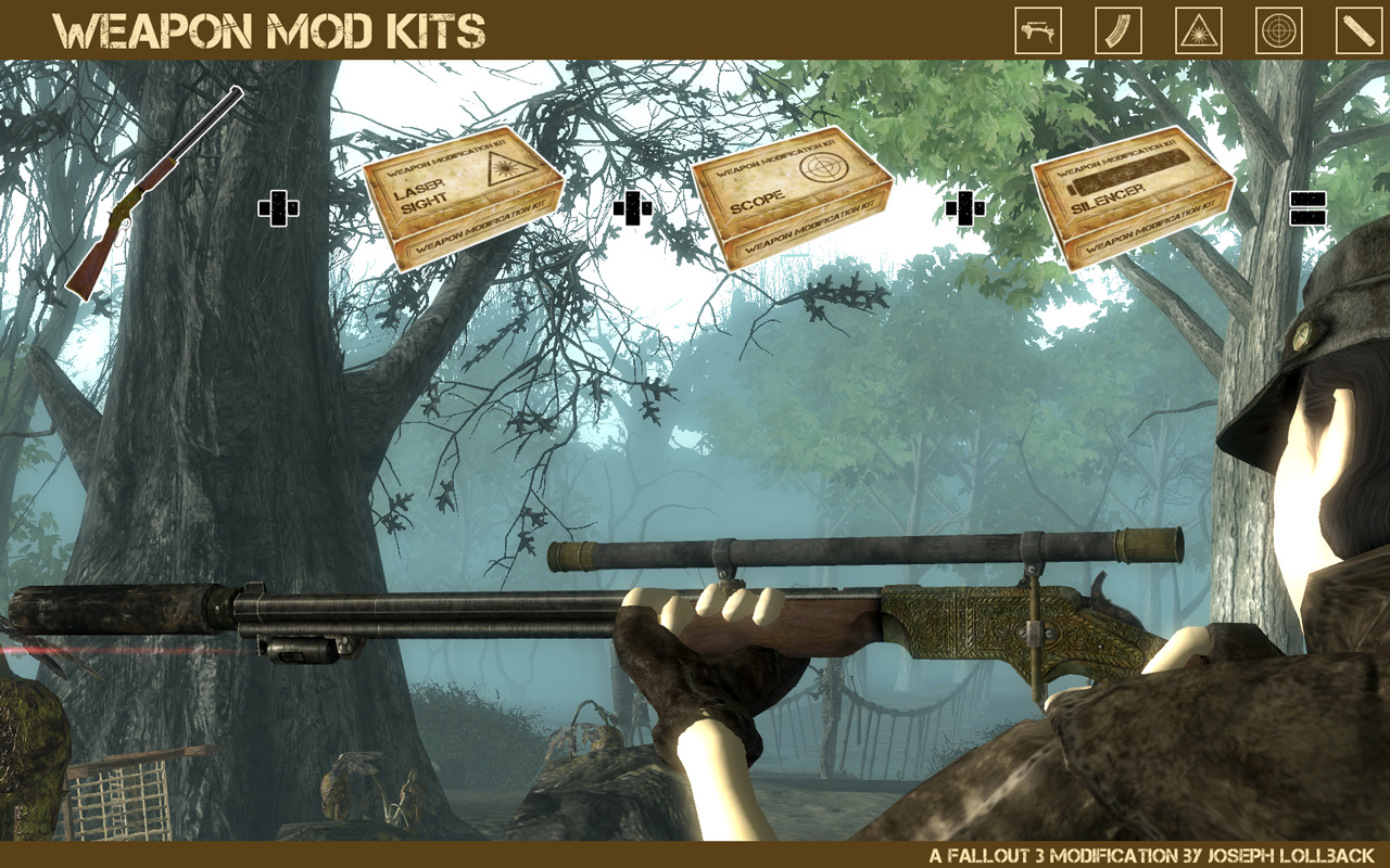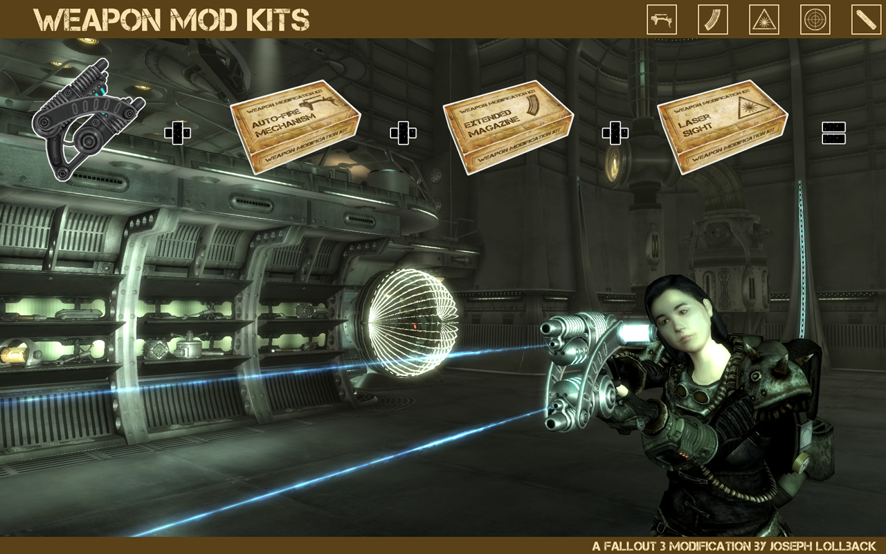 Чтобы модифицировать оружие, отнесите его и одну из совместимых модификаций из набора к верстаку. Активируйте верстак и выберите меню "Модификация оружия". Затем устанавливайте или удаляйте модификации с вашего ТЕКУЩЕГО оружия. Успешная модификация требует лишь наличия подходящих улучшений из набора.