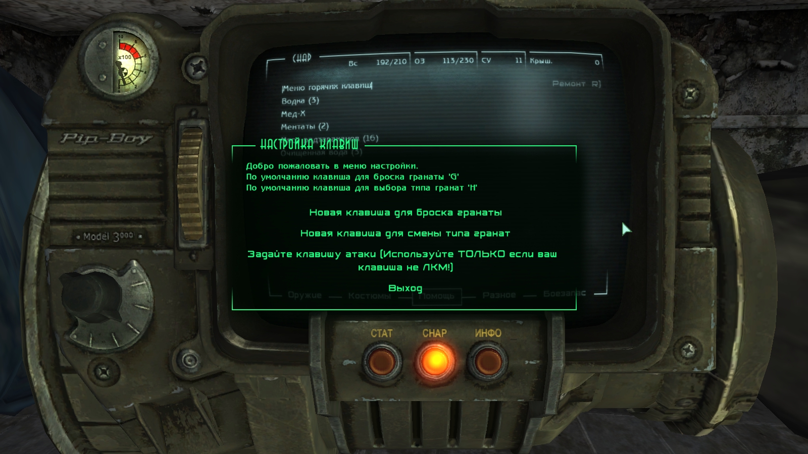 Предмет для управления добавится в раздел 'Помощь'. Счётчик гранат появится на экране при их наличии в инвентаре. Горячая клавиша не будет работать если вы безоружны (в том числе с кастетом). Будет пропадать/появляться вместе с ССТ и боезапасом. Нельзя перемещать.