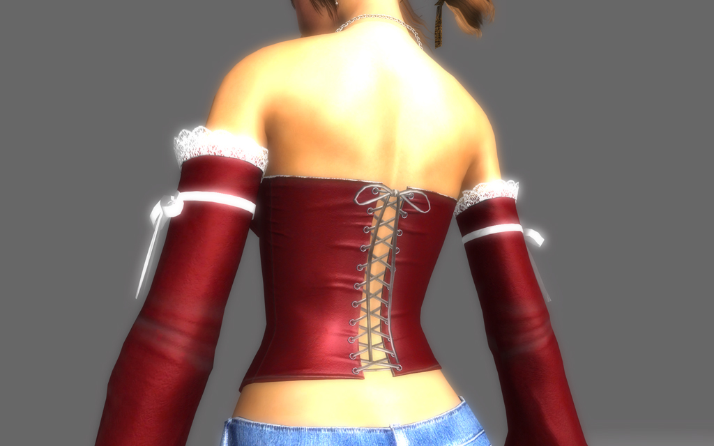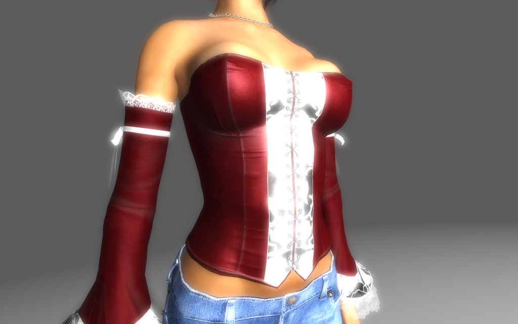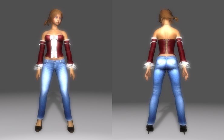 Плагин добавляет новый костюм - джинсы с корсетом и нарукавники к нему. Одежа выполнена