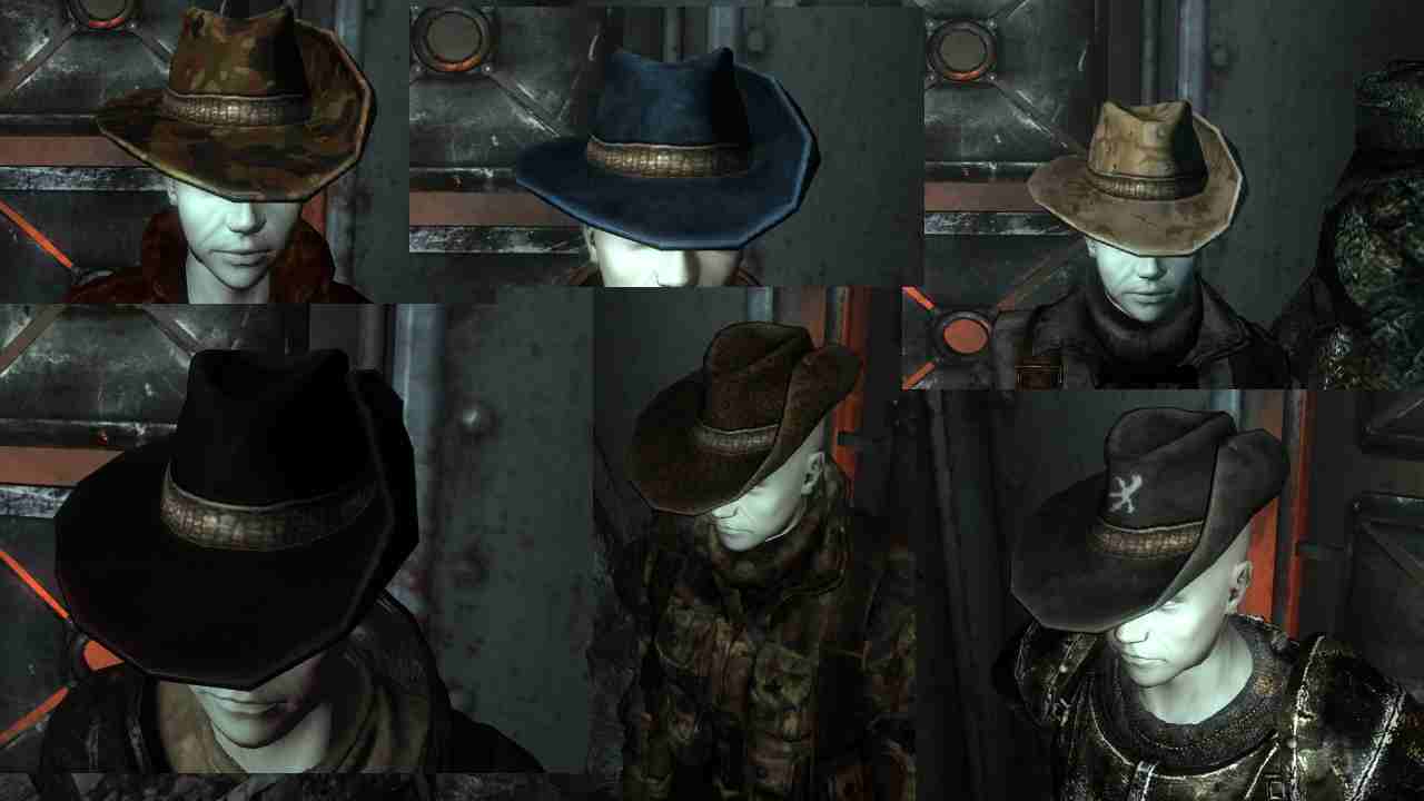 Мод добавляет несколько новых шляп с изогнутыми полями. Имеется 9 цветовых оттенков: черный, синий, зеленый и пустынный камуфляжи, леопард, олива, кожа, серый и стандартный.