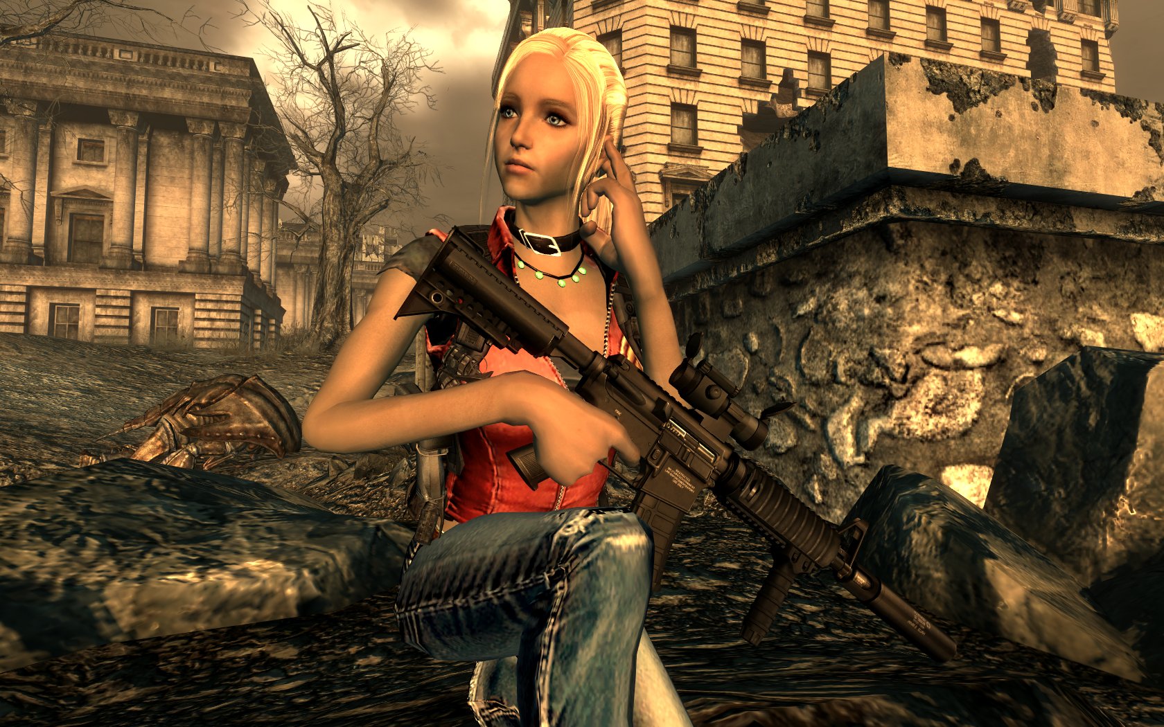 Оба ствола, как 5,56 так и 10 мм, наносят одинаковый урон. И этот урон черезчур высокий. H&K-ом под 10 мм можно раскатать супермутанта-оверлорда быстрей, чем любой другой имеющейся пушкой. Та же история с M4A1. У снайперки урон в 3 раза ниже.