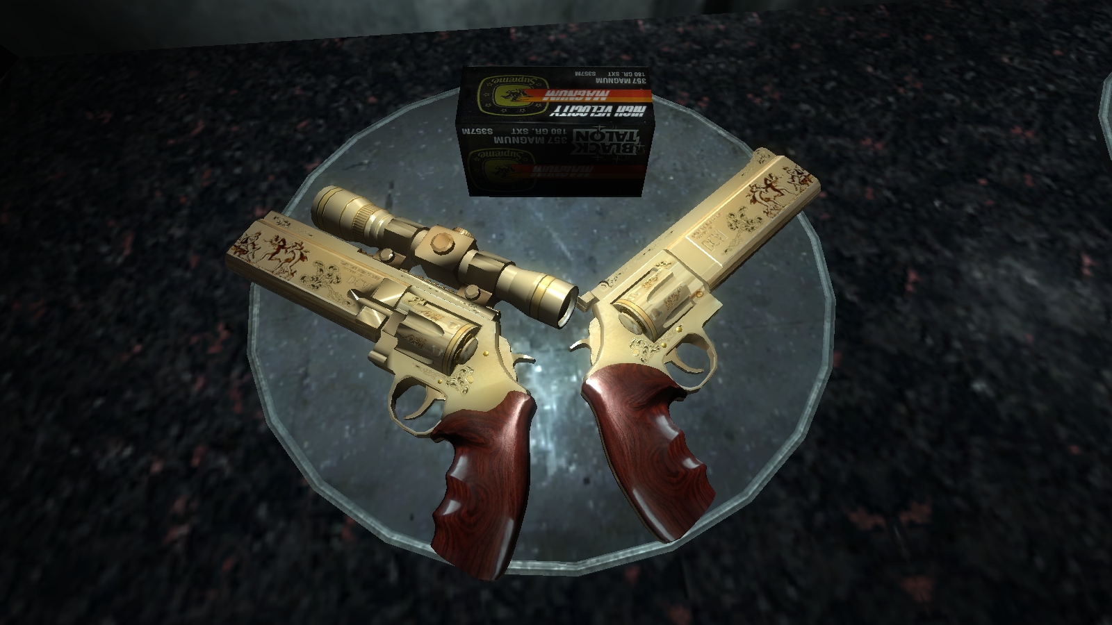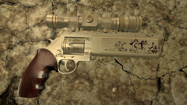 прицелом и без. Модель револьвера с оптическим прицелом вы можете найти в Монументе