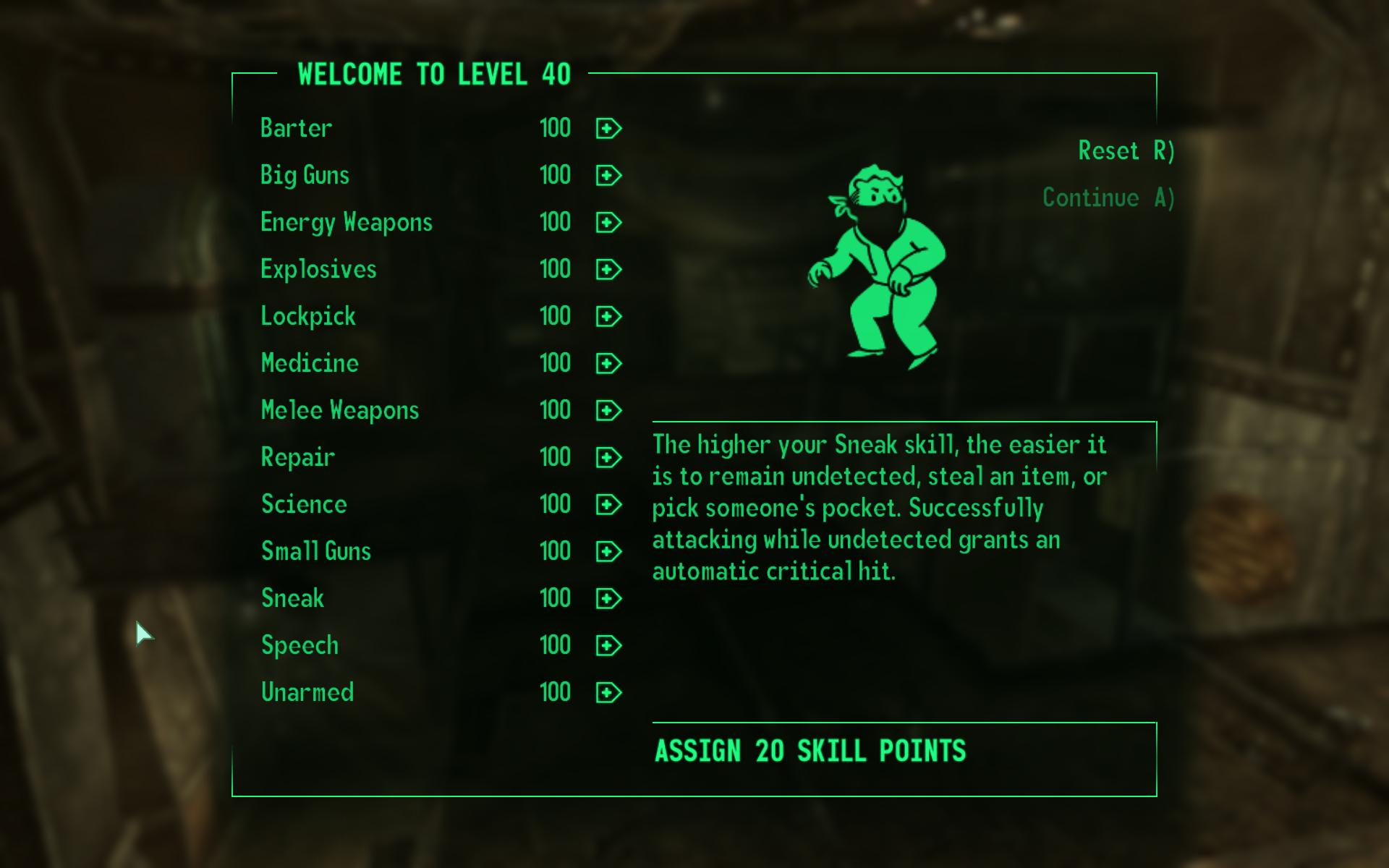 После достижения значения в 100 единиц, 101 и более не отображаются, так как игра не хранит более высокие значения. Автор установил уровень 255. Это не предназначено для изменения капа мастерства, но позволяет использовать экран повышения уровня, без необходимости в консоли, когда вы максимально повысили ваши навыки.