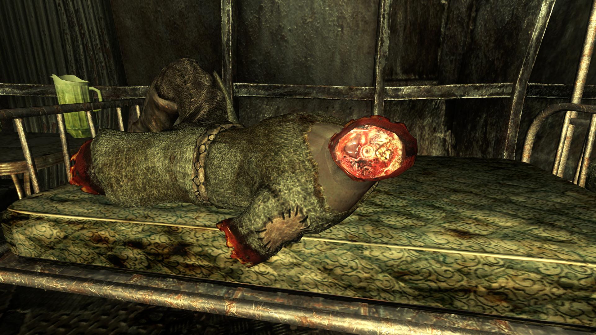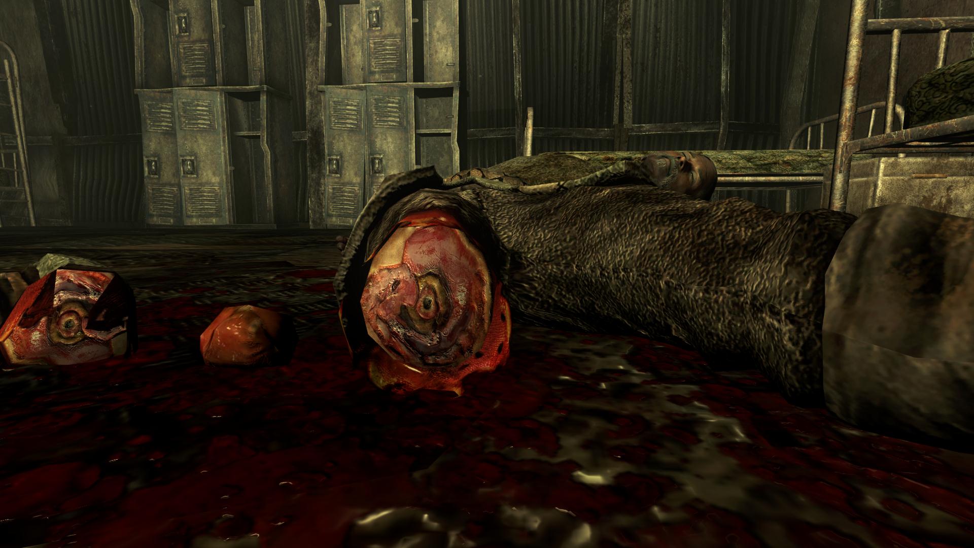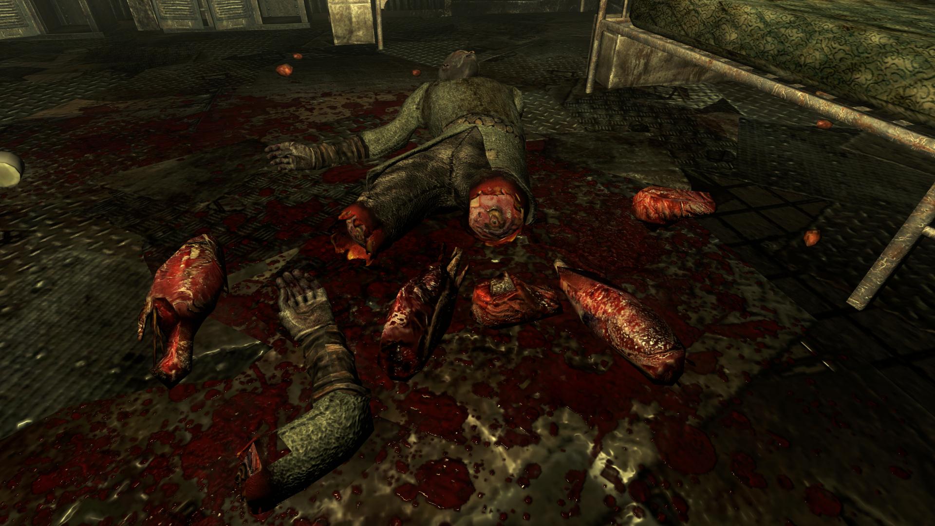 Плагин заменяет текстуры крови, костей, мышц и кожи оторванных людских конечностей (рук, ног, голов). Мод особенно будет полезен обладателям перка «Кровавая баня», ибо им часто приходится сталкиваться с тем, что их жертвы разлетаются в клочья.