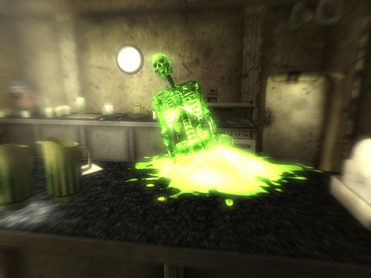 расплавленной жижи, будет оставаться еще и обугленный скелет. Данный эффект работает