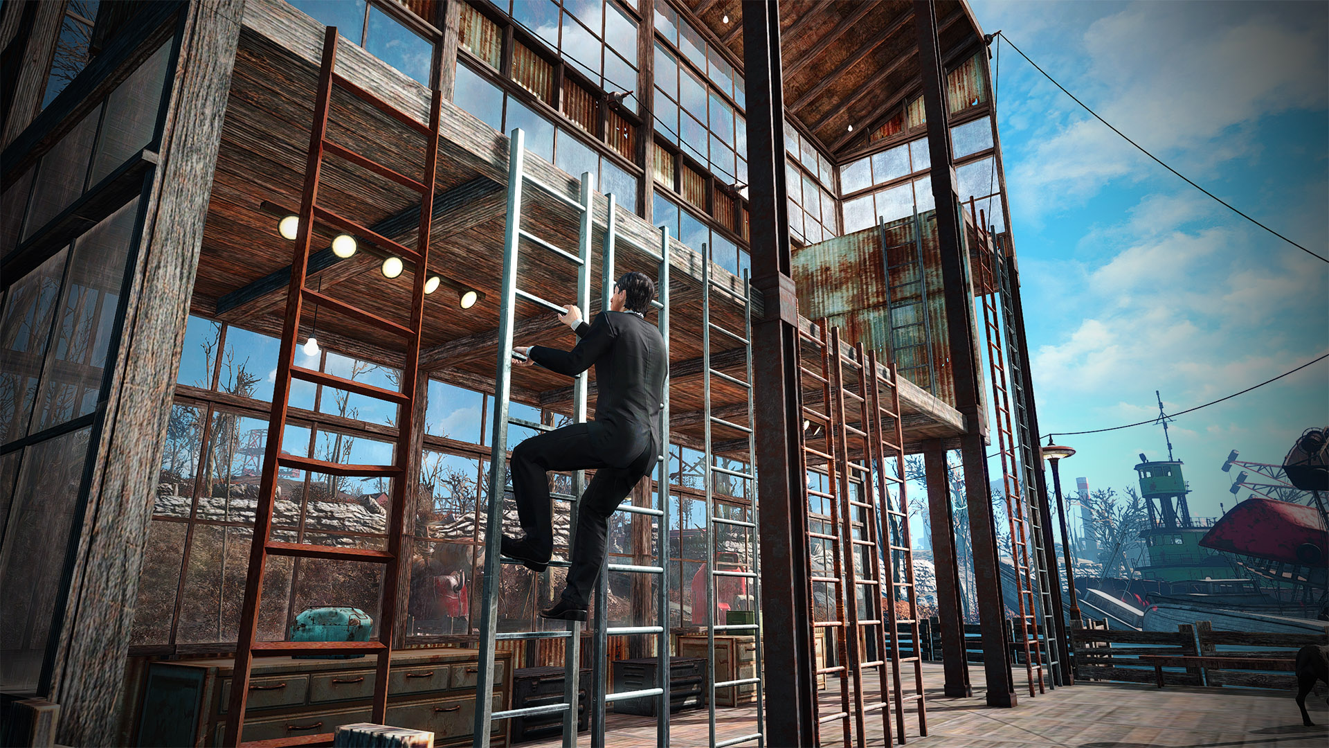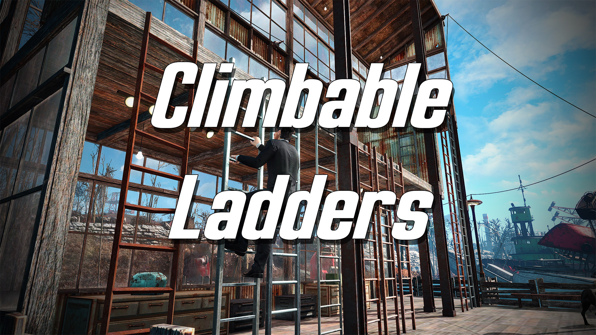Мод добавляет в Fallout 4 лестницы разной высоты, по которым вы и НИПы можете взбираться или спускаться в своих поселениях и соответствующие анимации с видом от 3-го лица. Изготовить лестницы можно в мастерской.