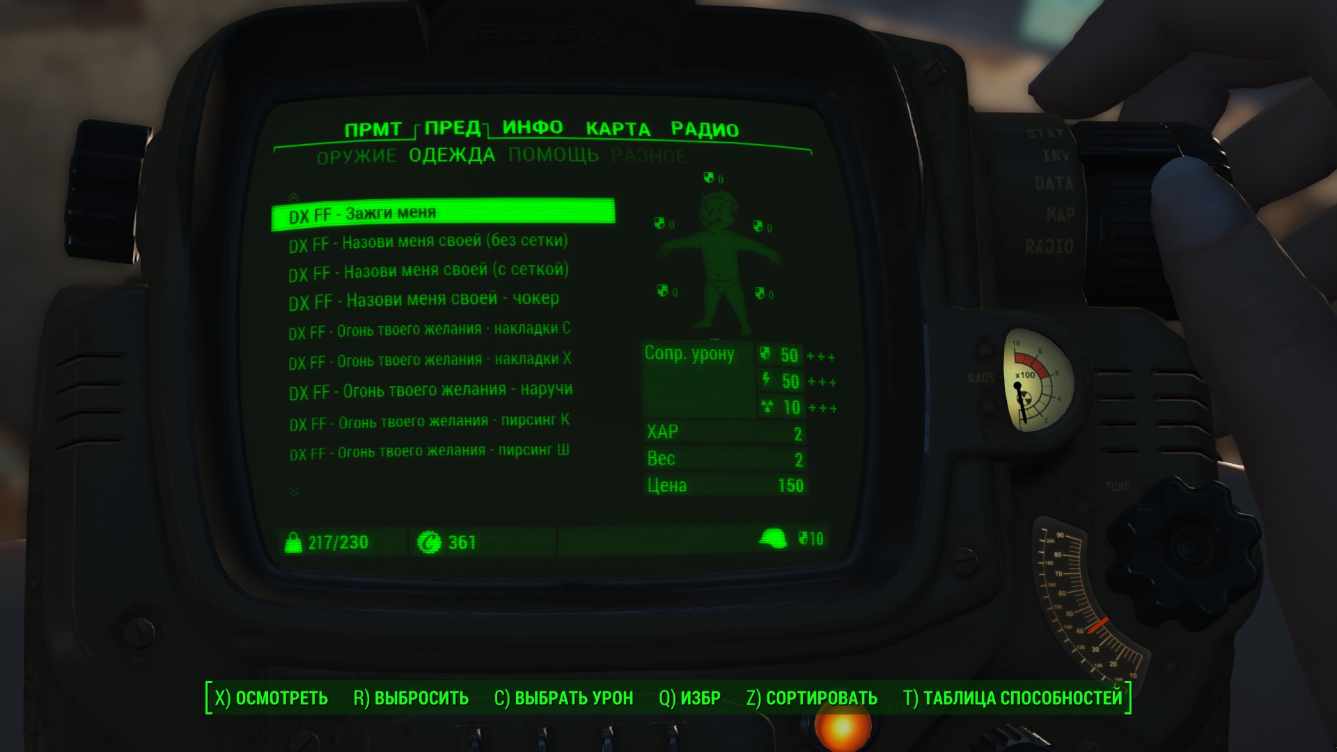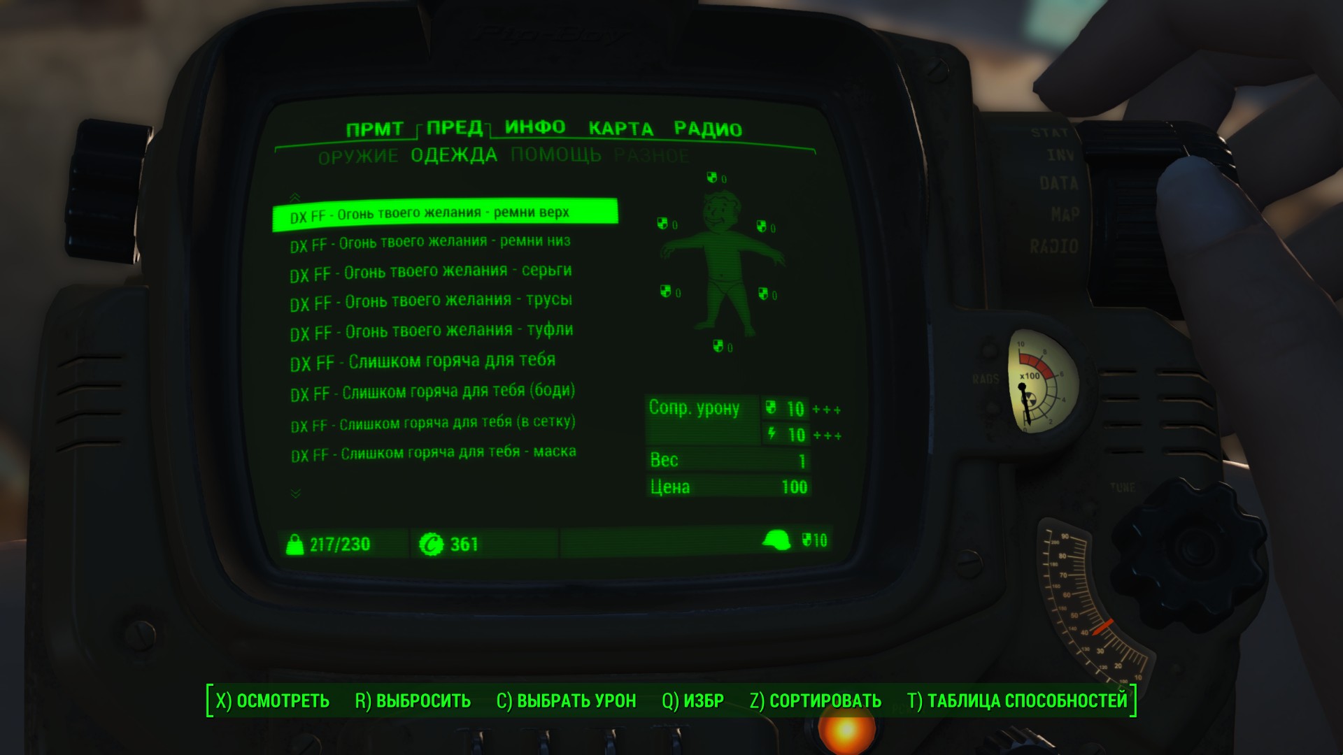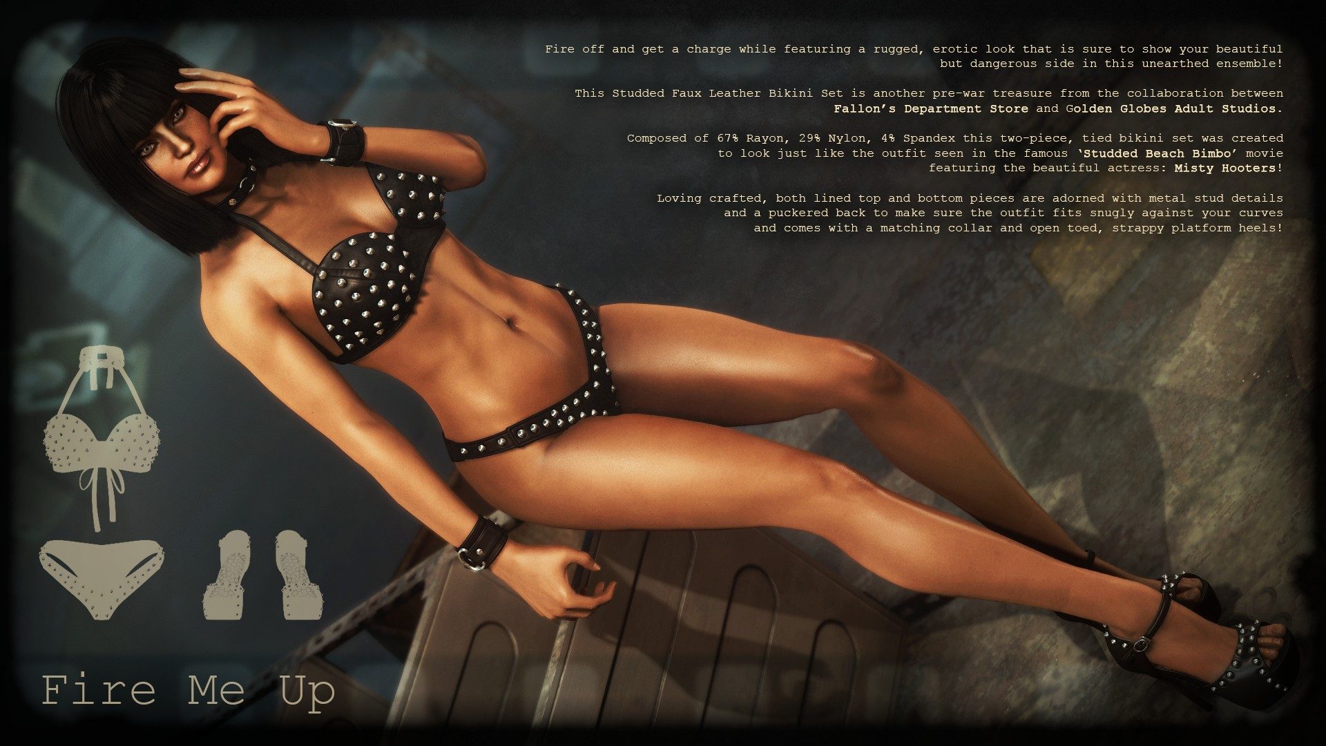 Мод добавляет в Fallout 4 четыре откровенных наряда с несколькими отдельными элементами. Изготовить одежду можно в химлаборатории. Улучшается одежда на верстаке для создания брони с помощью баллистической ткани. Есть поддержка физики CBP.