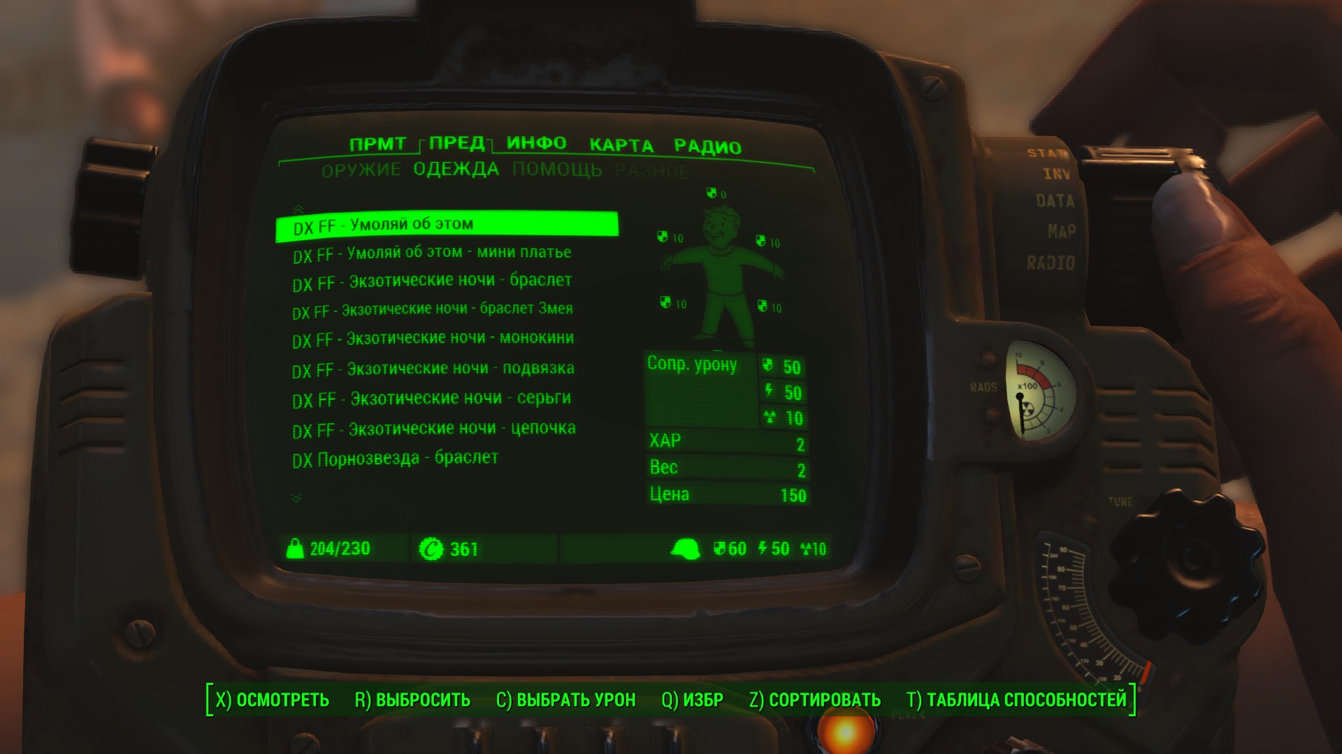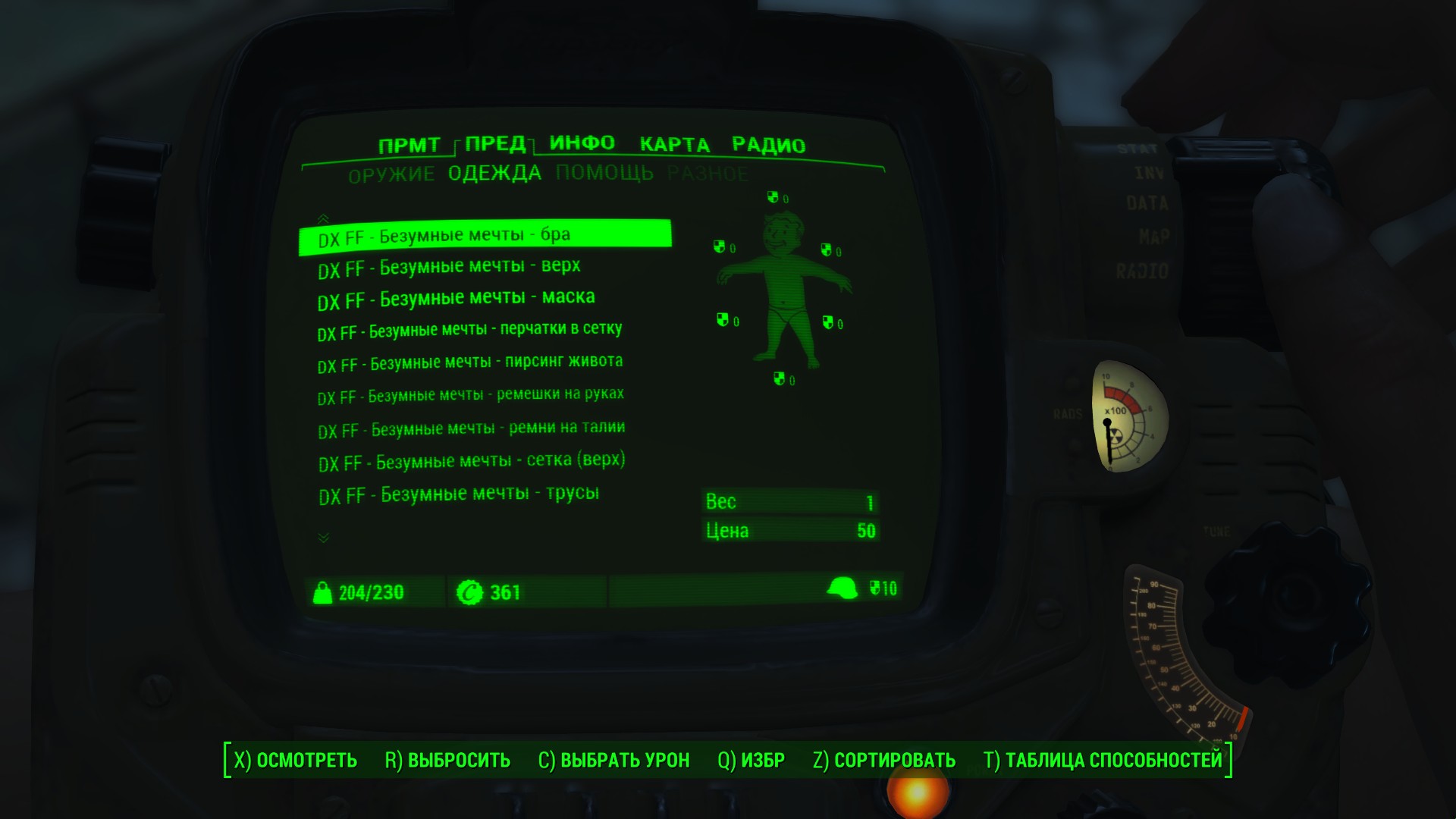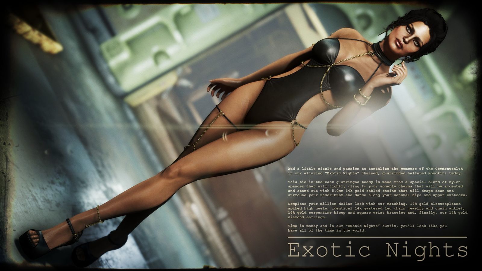 Вторая часть сборника одежды фетиш-стиля от Deserter X. Мод добавляет в Fallout 4 три откровенных наряда с несколькими отдельными элементами. Изготовить одежду можно в химлаборатории. Улучшается одежда на верстаке для создания брони с помощью баллистической ткани. Есть поддержка физики CBP.