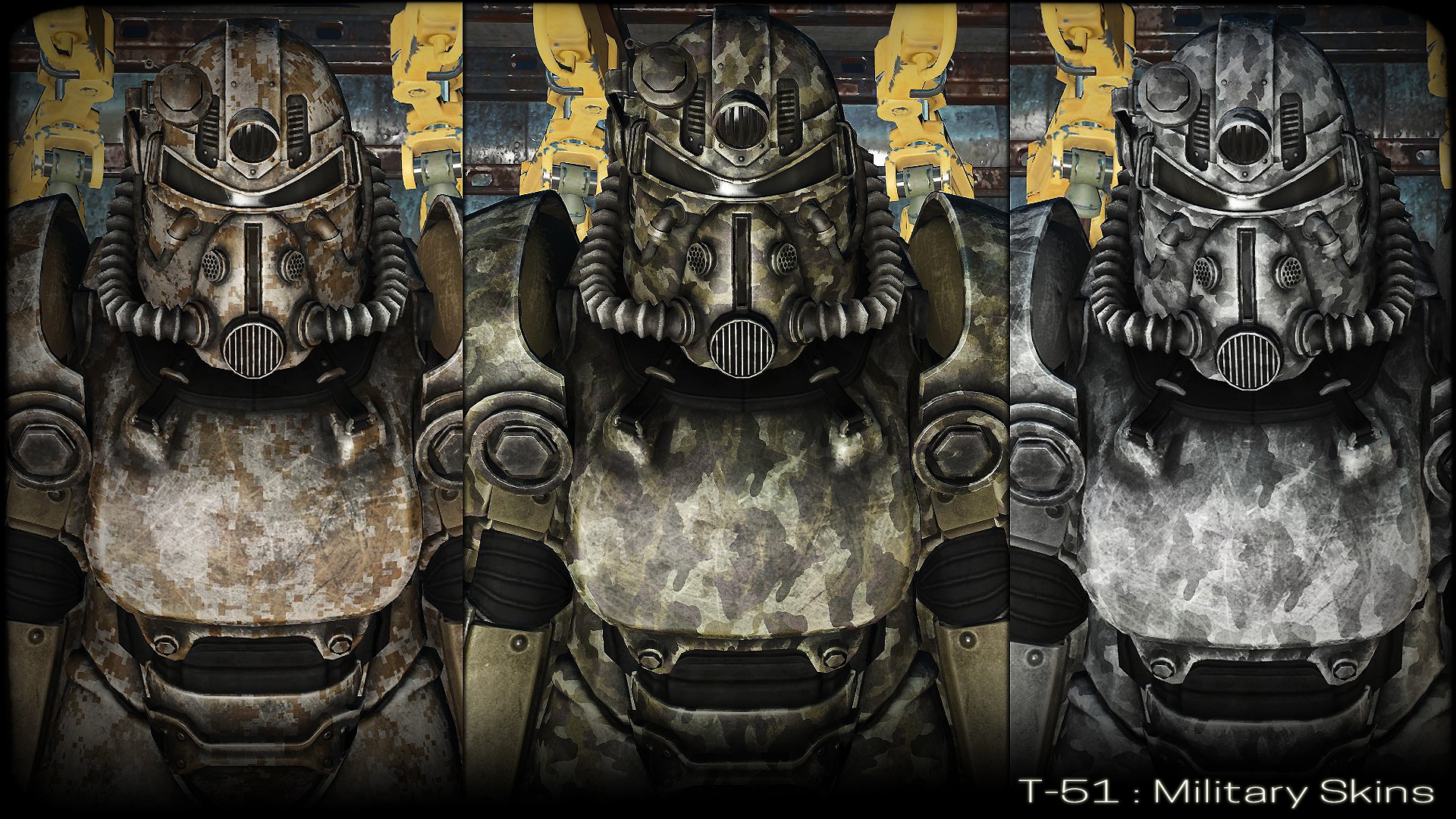 Добавляет несколько новых камуфляжных раскрасок силовой брони T-51.