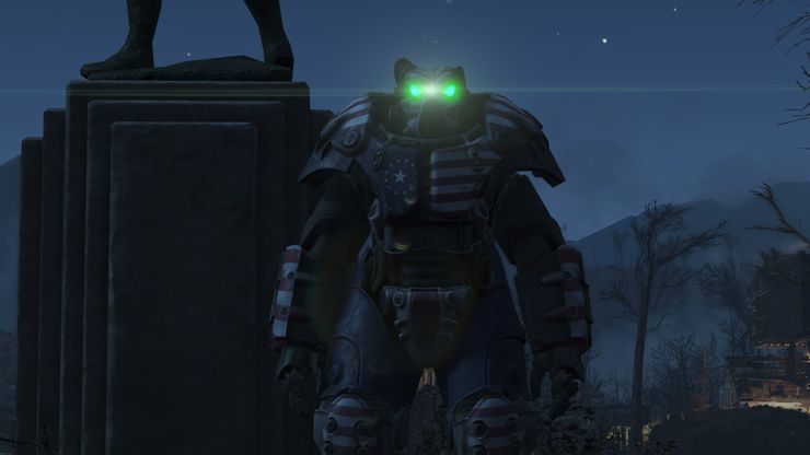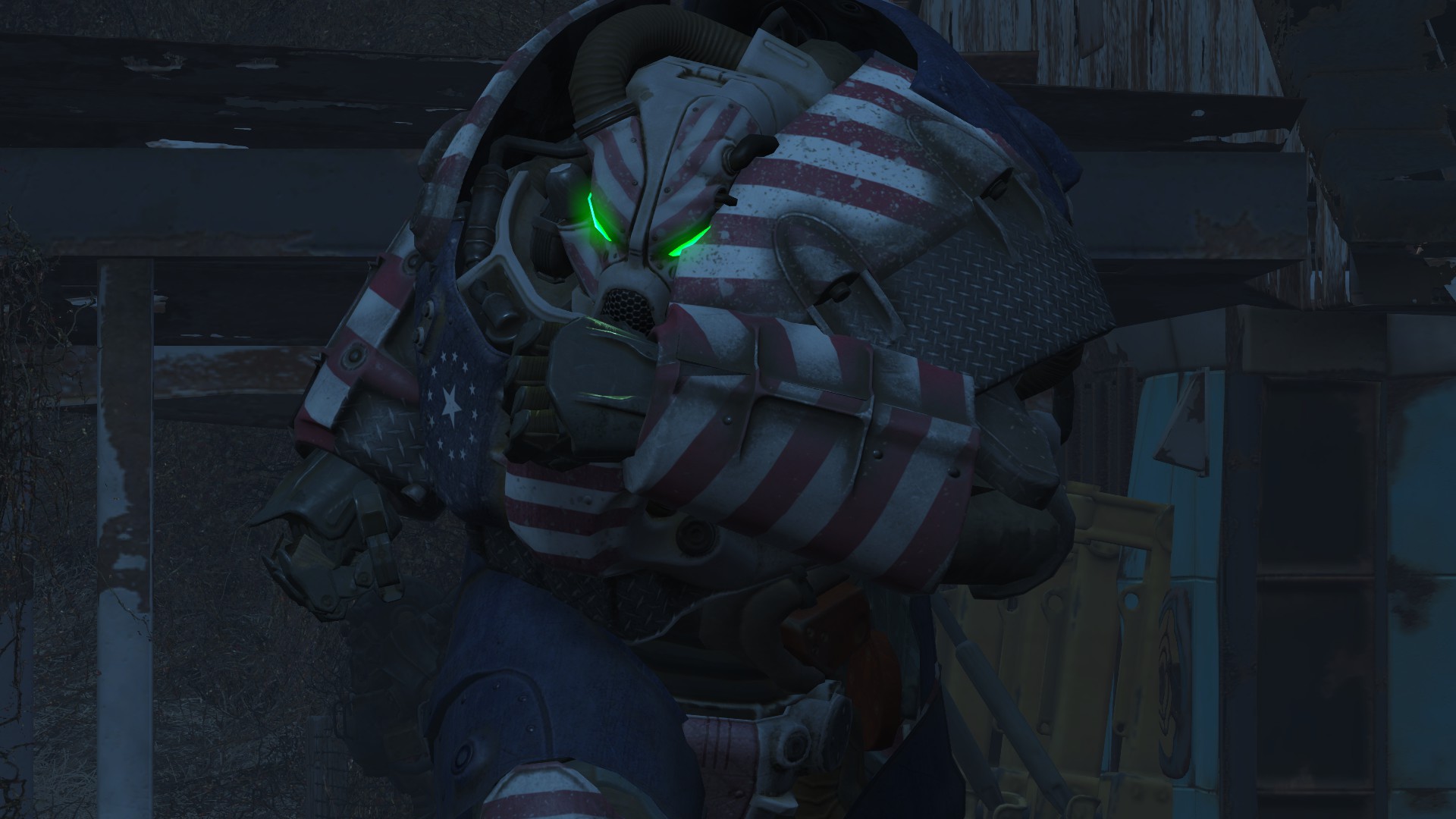 Патриотическая раскраска силовой брони X-01. Имеется дополнительный файл с альтернативной однотонной раскраской шлем.