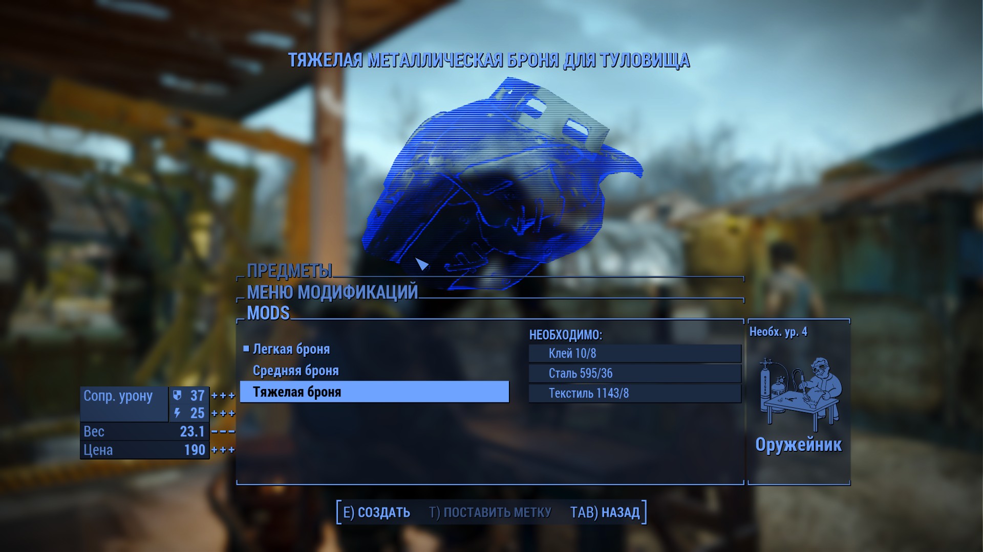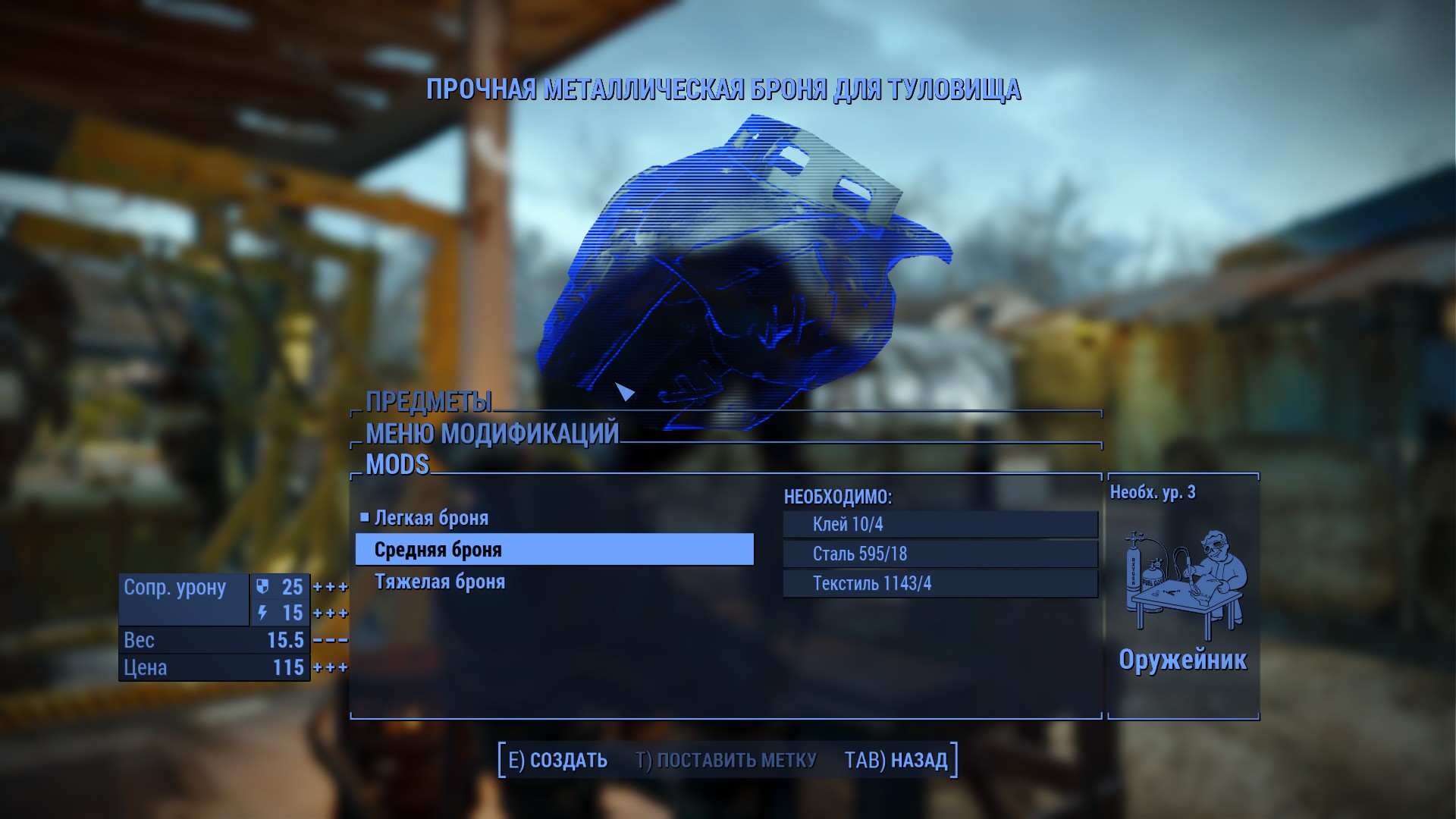 Для создания средней брони - 3 ранг перка "Оружейник"