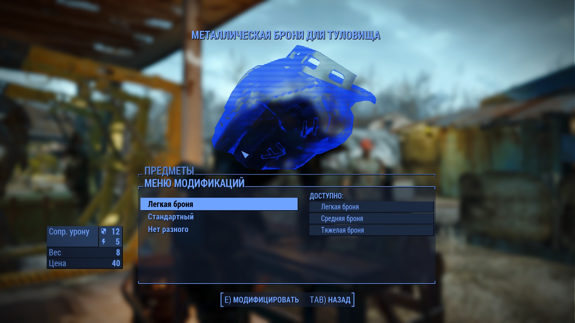 Данный мод добавляет новую опцию в меню модификаций верстака для создания брони, благодаря которой можно улучшать соответствующую броню до средней или тяжелой, и наоборот. Уникальные свойства легендарной брони остаются неизменными. Также предыдущие модификации можно найти в Пип-бое во вкладке "Модификации".