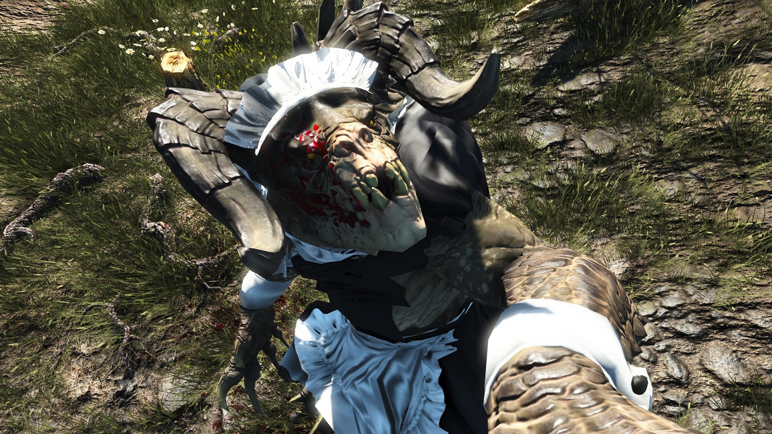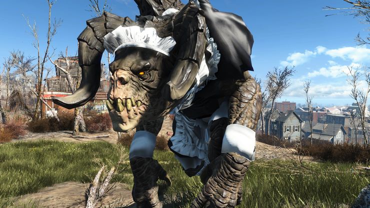 Это Когти Смерти, у которых есть свой собственный наряд французской служанки. Создан наряд автором мода через конверсию "Наряда французской служанки для FO4".