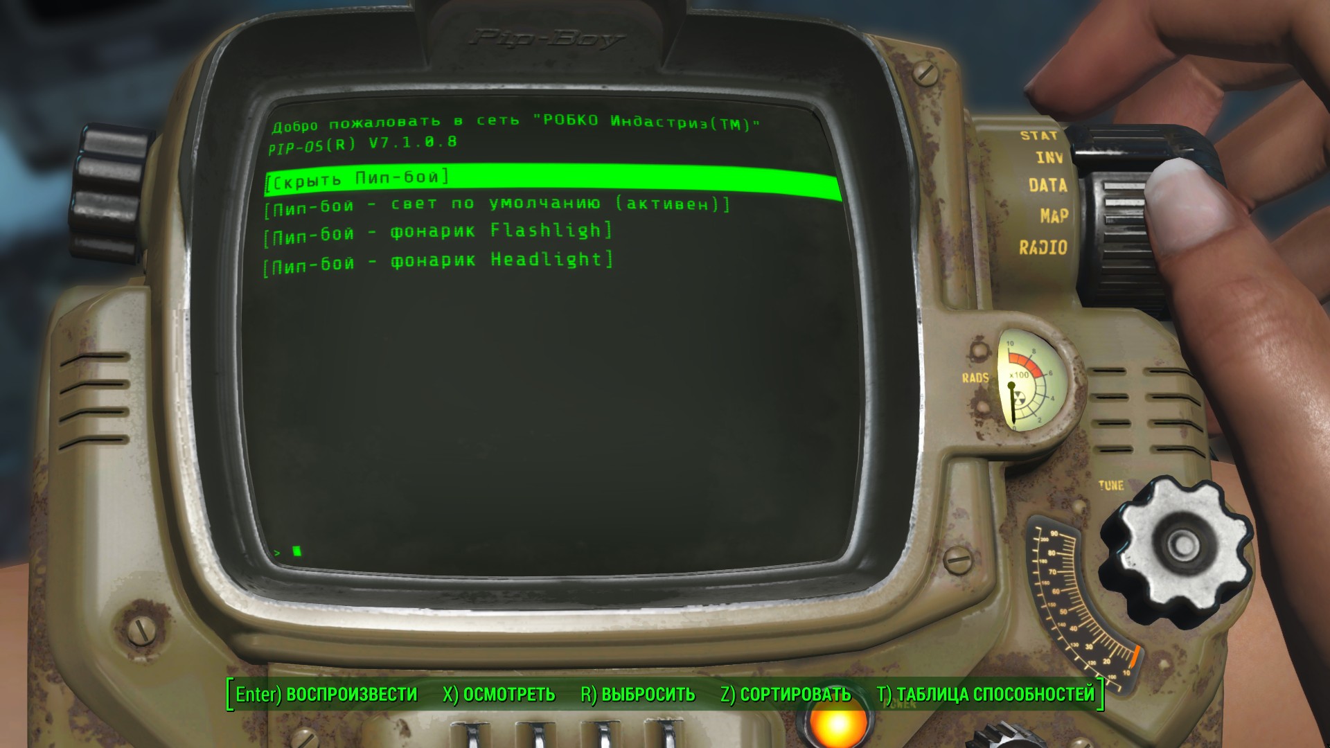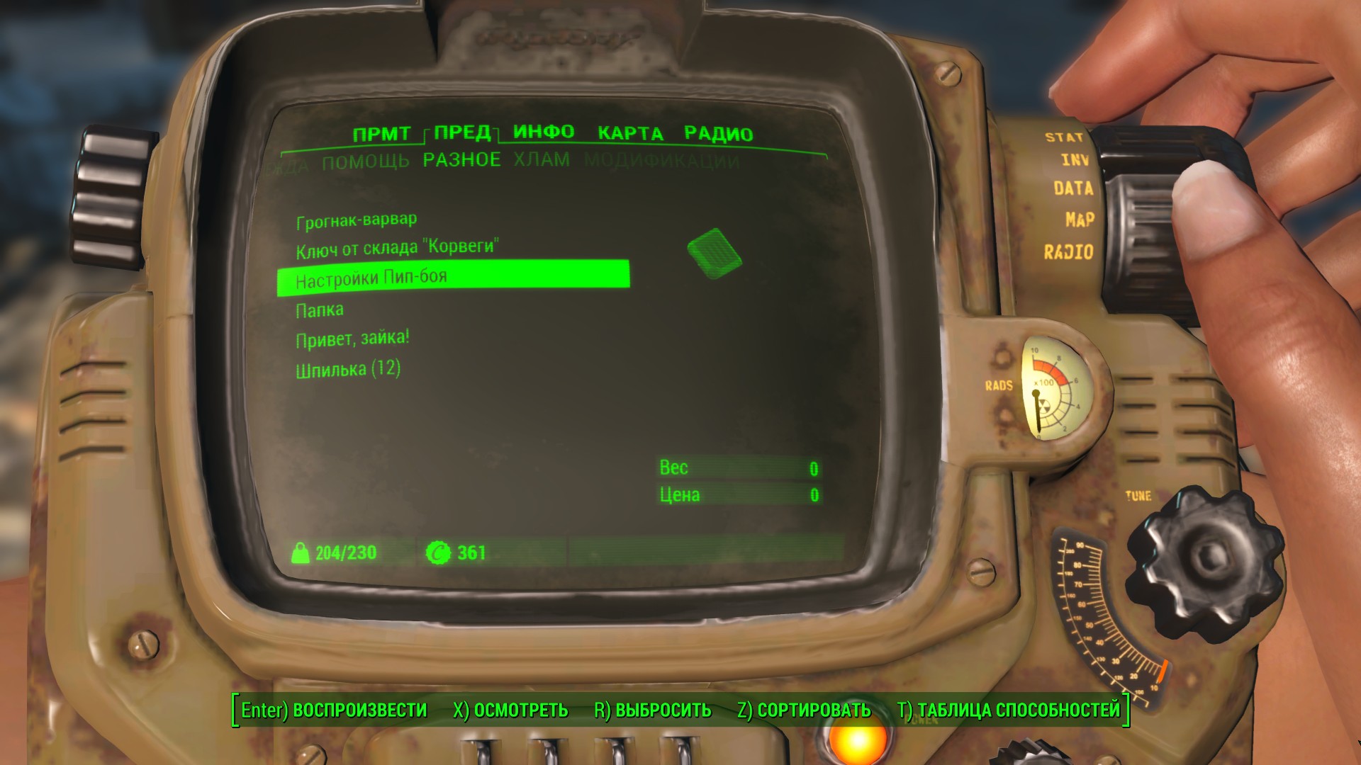 При первом включении мода вам нужно будет хотя бы один раз вручную открыть и закрыть меню Пип-боя. Перед удалением мода включите отображение Пип-боя. Если после удаления мода возникли проблемы с отображением Пип-боя, используйте консольную команду:
