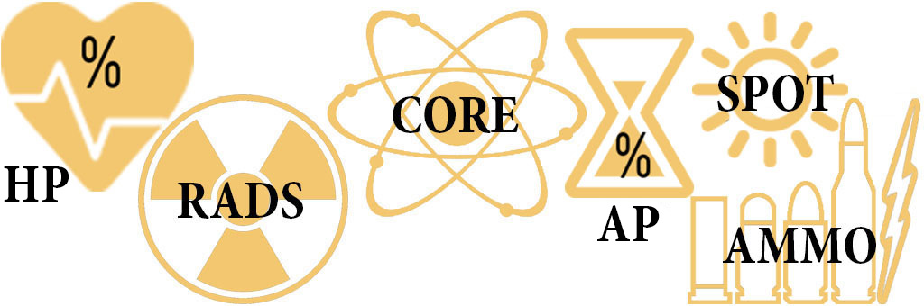Вместо надписей HP, RADS, CORE, AP, AMMO теперь пиктограммы.