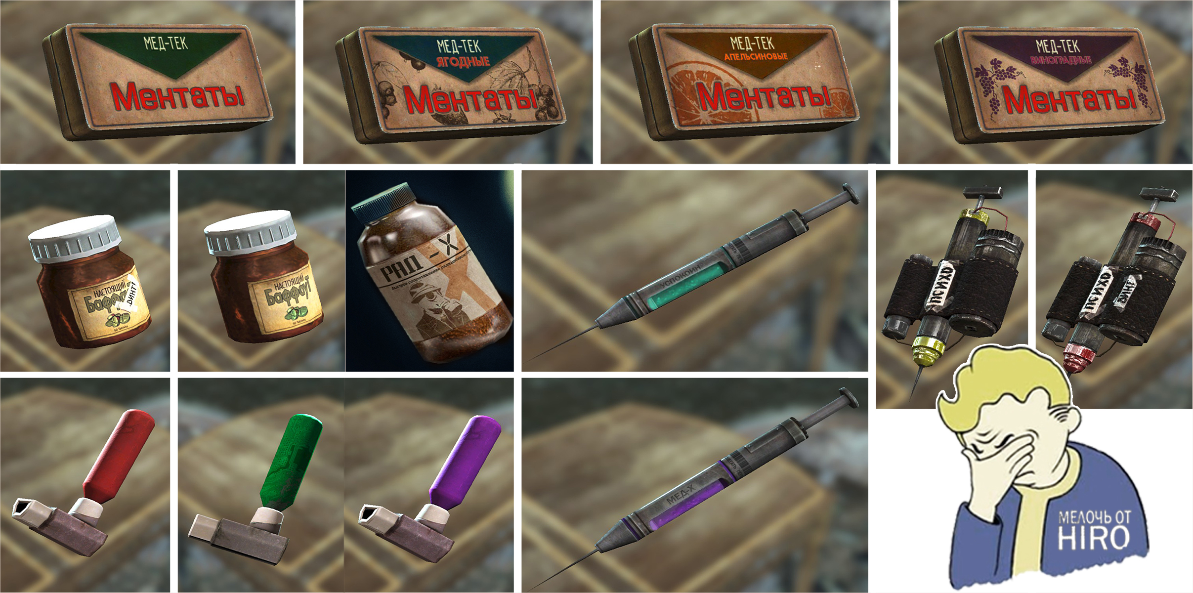 Единственное... я убрал надписи с препаратов типа "Винт" - они теперь просто разноцветные.
