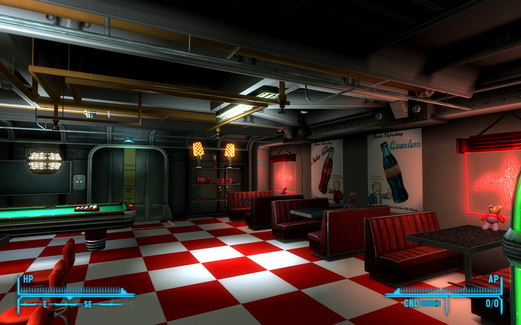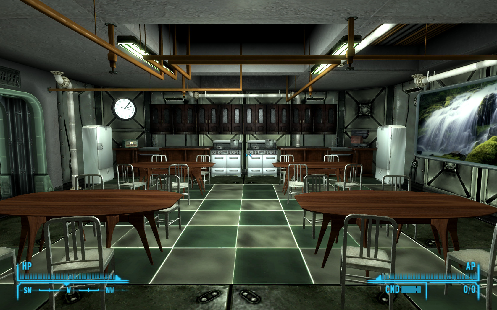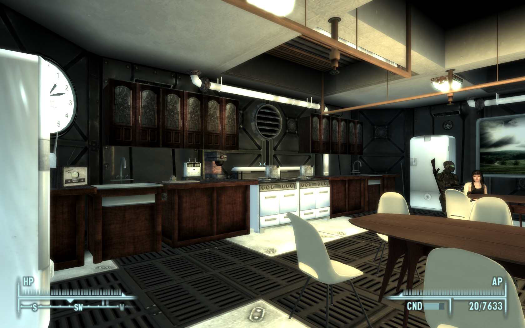 Большое количество контейнеров для ваших вещей; выставочные поверхности - столы и витрины; полки для пупсов; мини-лабораторию; мини-больницу; верстак для создания разных предметов; робота-дворецкого, который может изменить внешний вид или причёску вашего персонажа, ответить на некоторые вопросы и рассказать пару анекдотов (да, это копия робота из Мегатонны); большое количество места в центральной зоне; хозяйская кровать; кровати для компаньонов; навмеши для компаньонов и множество idle маркеров, чтобы компаньоны не стояли на месте, а были чем-нибудь заняты; множество новых объектов, таких как бильярдный стол; душ с выключателем и бассейн.
