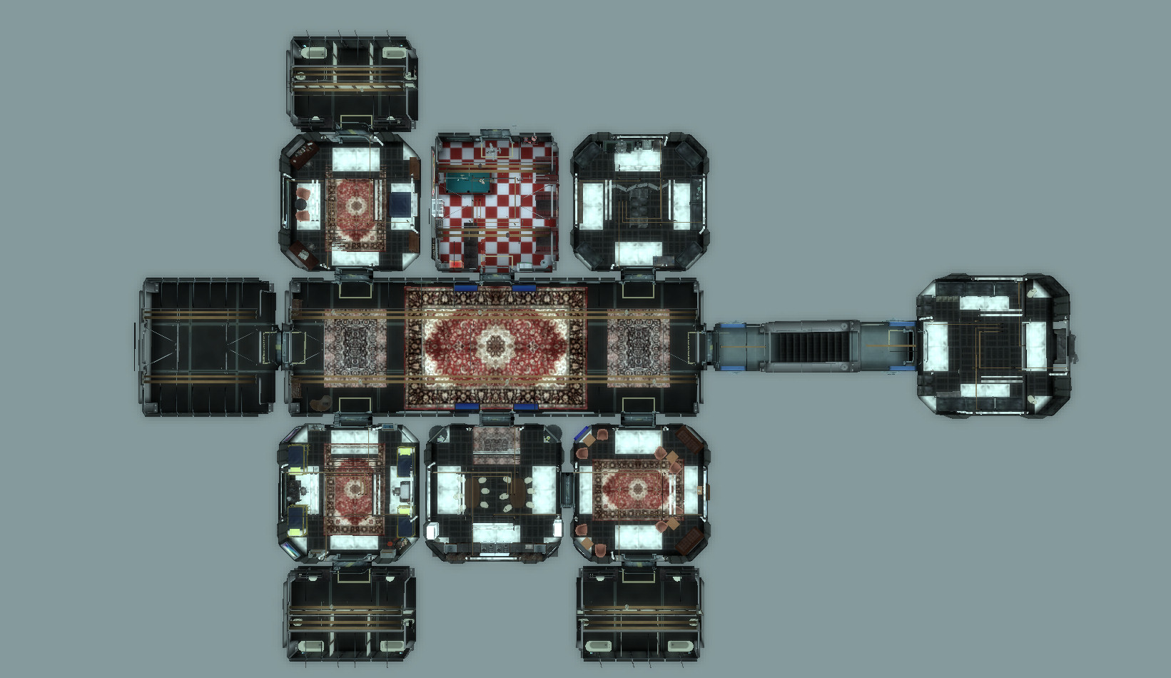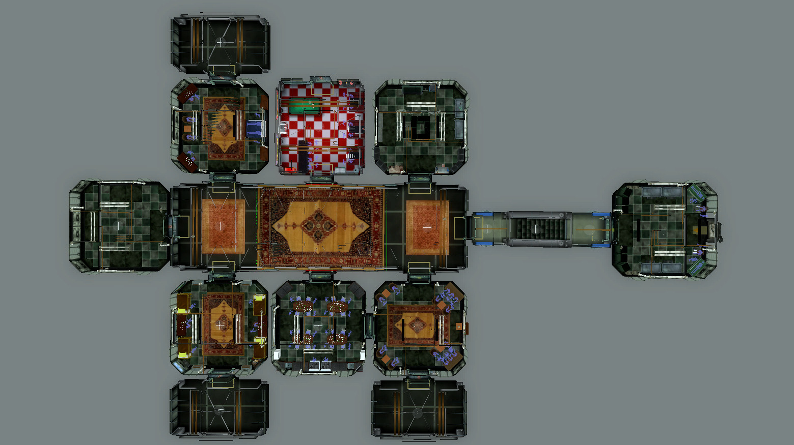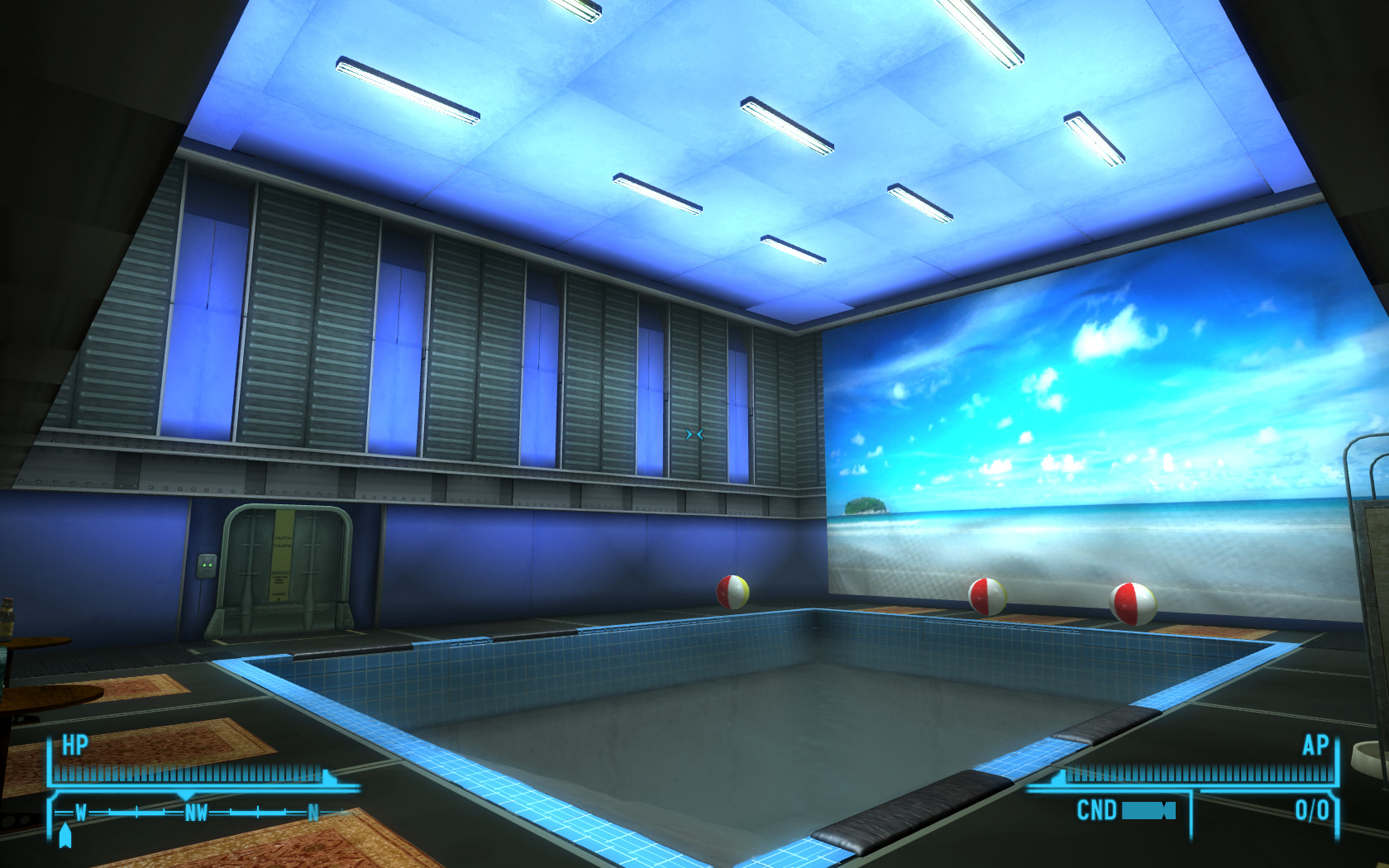 Большое количество контейнеров для ваших вещей; выставочные поверхности - столы и витрины; полки для пупсов; мини-лабораторию; мини-больницу; верстак для создания разных предметов; робота-дворецкого, который может изменить внешний вид или причёску вашего персонажа, ответить на некоторые вопросы и рассказать пару анекдотов (да, это копия робота из Мегатонны); большое количество места в центральной зоне; хозяйская кровать; кровати для компаньонов; навмеши для компаньонов и множество idle маркеров, чтобы компаньоны не стояли на месте, а были чем-нибудь заняты; множество новых объектов, таких как бильярдный стол; душ с выключателем и бассейн.