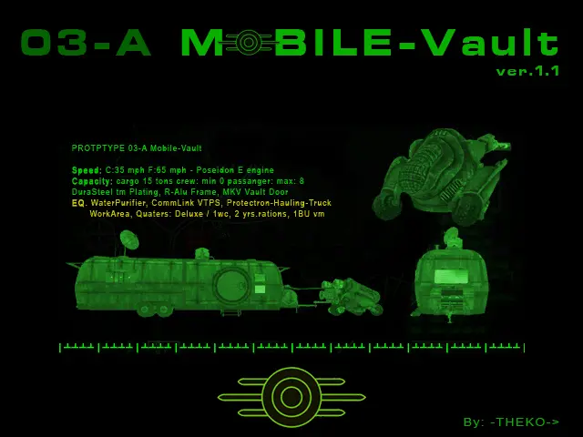 Этот мод включает в себя серию квестов в стиле поиска сокровищ, которые позволяют игроку получить бронированное транспортное средство под названием Мобильное убежище. Квесты также включают в себя 3 скрытых убежища и комплекс Vault-Tec.