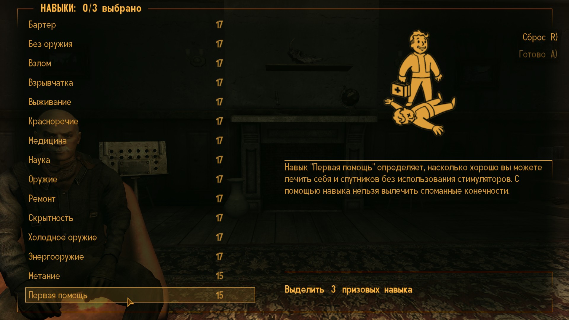 Основа модификации - добавление новых навыков. К основным 13-ти навыкам были добавлены еще два, а в будущем возможно добавление еще большего количества новых навыков. Навыки полностью отображаются в меню Пип-Боя, в меню повышения уровня и меню призовых навыков. Для этого пришлось сделать совершенно новые, расширенные панели интерфейса, позволяющие добавлять сколько угодно новых навыков.