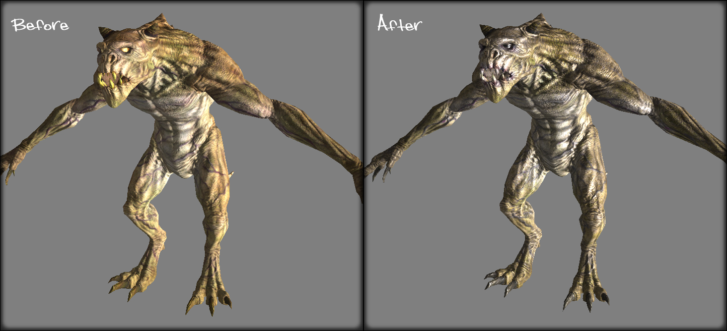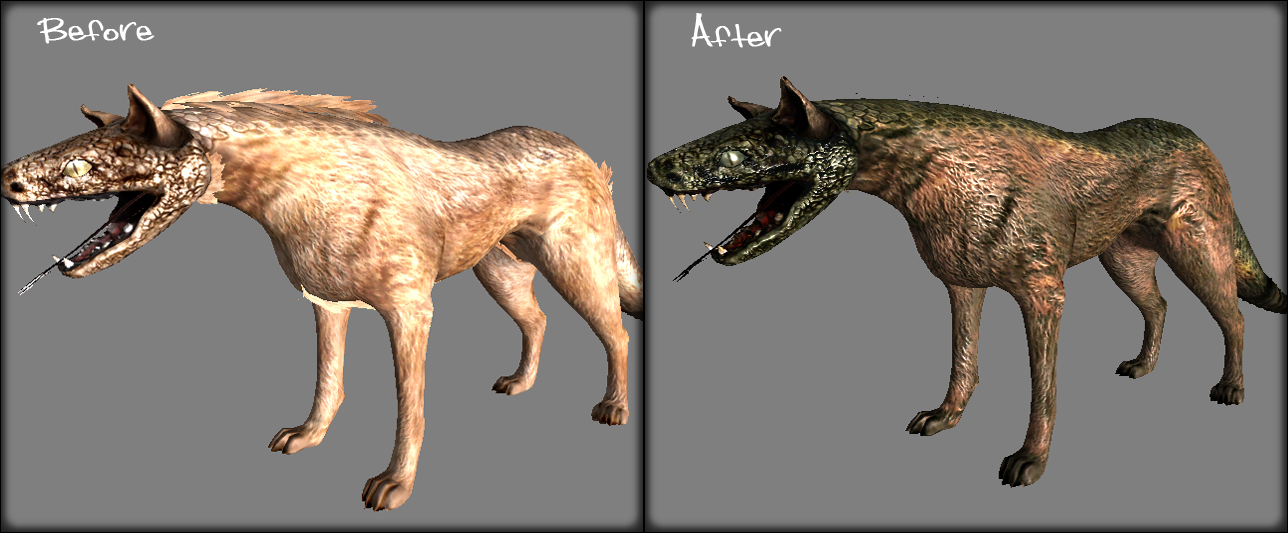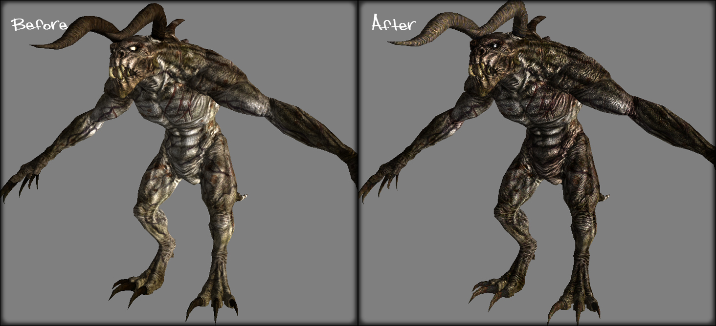 Мод заменяет текстуры некоторых существ в игре. Обратите внимание, это не текстуры с высоким разрешением, этот мод основан на стандартных игровых текстурах, просто они были перерисованы таким образом, чтобы они выглядели менее мультяшно; более реалистично.
