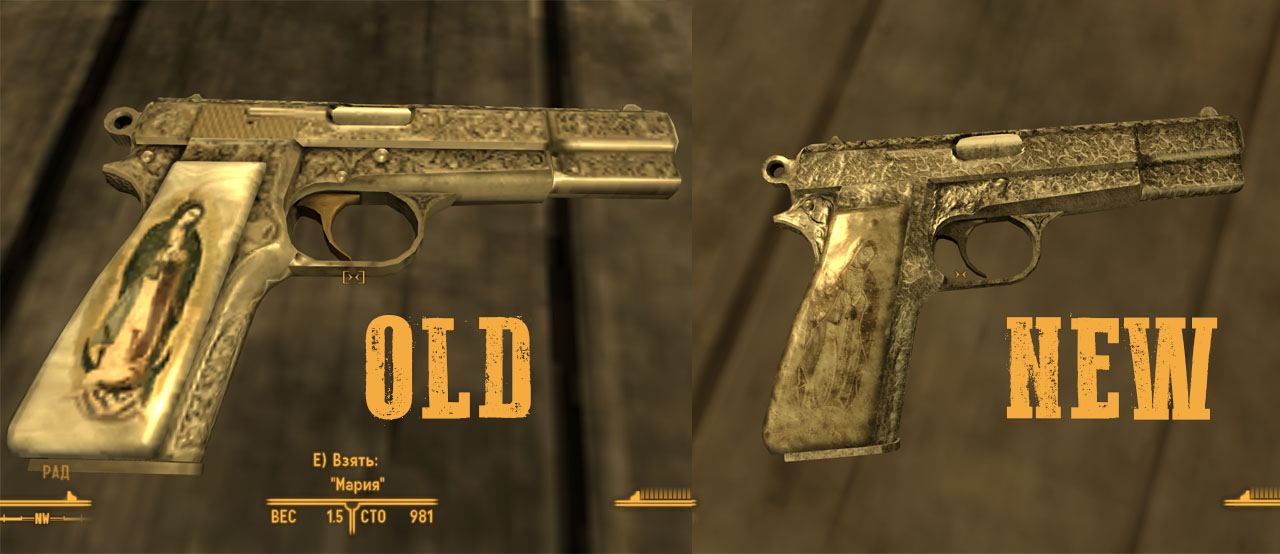 Недавно решил перепройти New Vegas и снова обратил внимание на один из самых запоминающихся пистолетов в игре, 9 мм пистолет "Мария". Ретекстур делал для себя, решил выложить, знаю что поздновато взялся, но когда выйдет редактор для Fallout 4 буду пытаться что-то делать там.