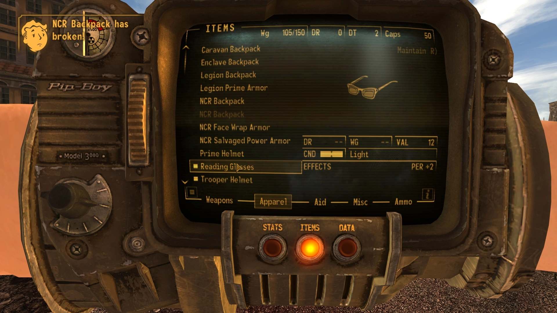 В игре нет объяснения тому, как игрок держит различные предметы в своем инвентаре. Система веса New Vegas, возможно, никогда не будет такой захватывающей, как в EFT или других играх на выживание. Тем не менее, CIBS — это эксперимент, в котором реализована удобная для лора простая система рюкзаков, так что она кажется частью ванильной игры.