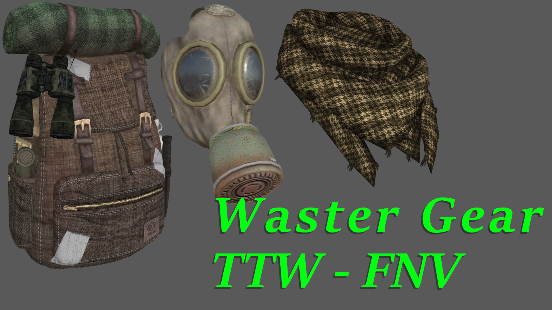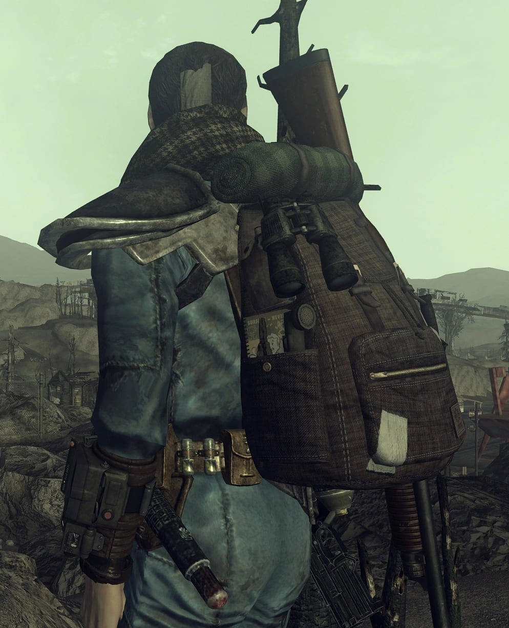 Этот мод добавляет три новых аксессуара для вашего персонажа: рюкзак, противогаз и шарф. Все вещи можно приобрести в магазине Мойры Браун или у Чета, в магазине Гудспрингс.
