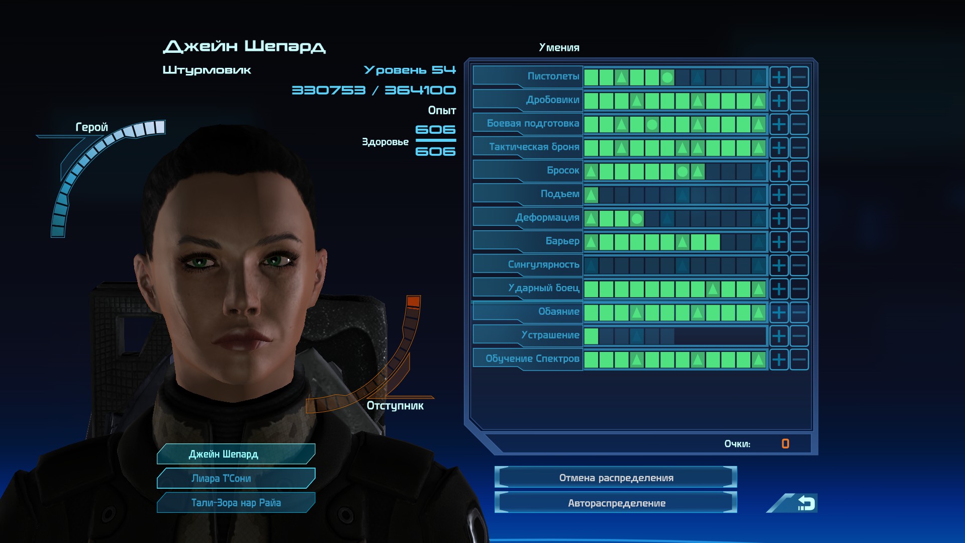 Джейн Шепард - Герой - Штурмовик. Профиль персонажа. Для комфортной новой игры + или импорта в игру Mass Effect 2.
