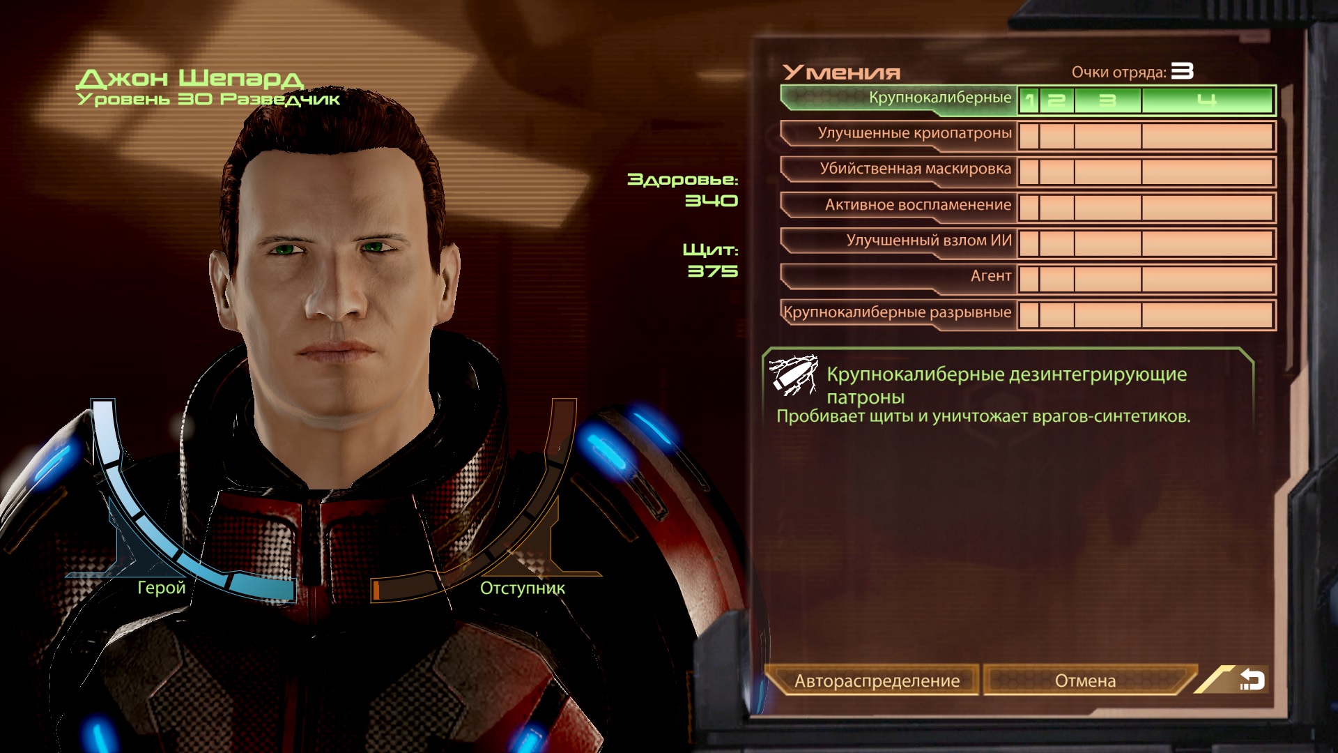 Джон Шепард - Герой - Разведчик. Профиль персонажа. Для комфортной новой игры + или импорта в игры Mass Effect.