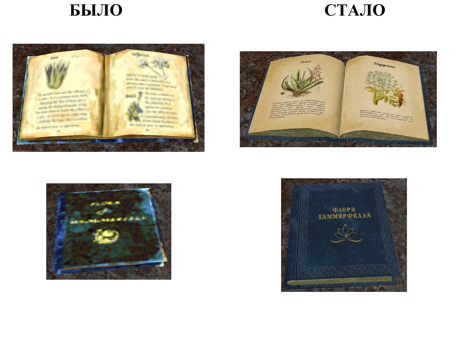 Косметический плагин. Добавляет реплейсер книги «Флора Хаммерфелла» в книжный магазин Дорисы в Балморе.