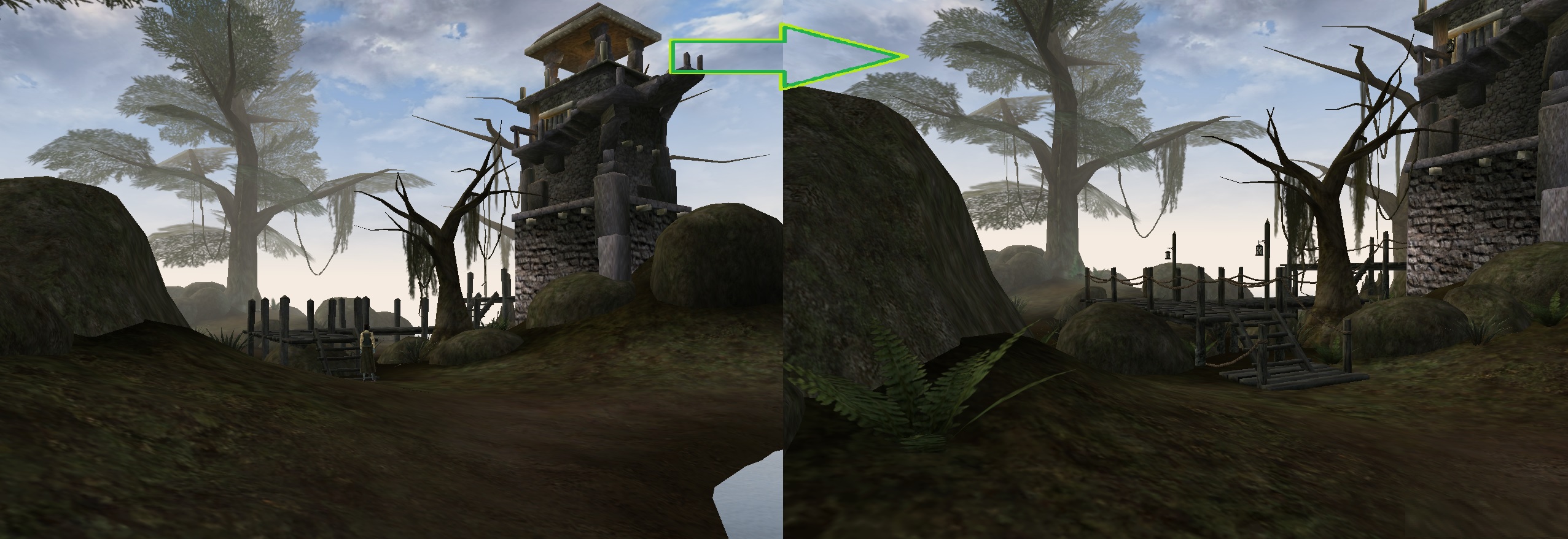 2) Путь второй. Желательно до этого сделать первый запуск игры(без Save)Выходим из игры. Открываем ПК поиск-> Virtualstore(C:Users\имя\AppData\Local)->Program files (x86) -> Bethesda Softworks-> Morrowind( здесь находится morrowind.ini меняем параметры)-> может придется создать папку, а можно просто закинуть Data Files мода. В нем находится Mor_trava.esp Именно саму папку Data Files c модом. Для тех кто win 7 x64 без виртуализации x32. Экран 1024x768 растягивается до 1920x1080. У кого установлен MGE XE с экраном не мучаемся.