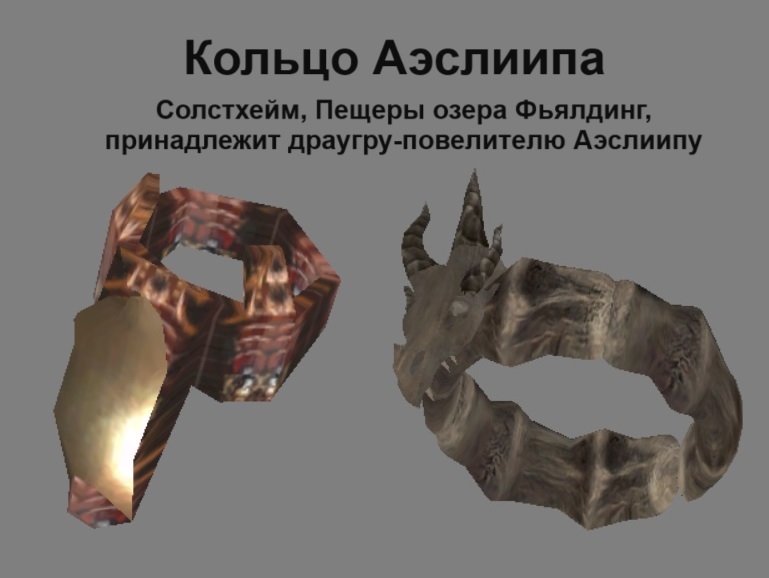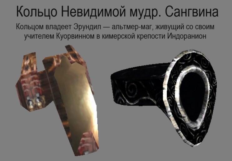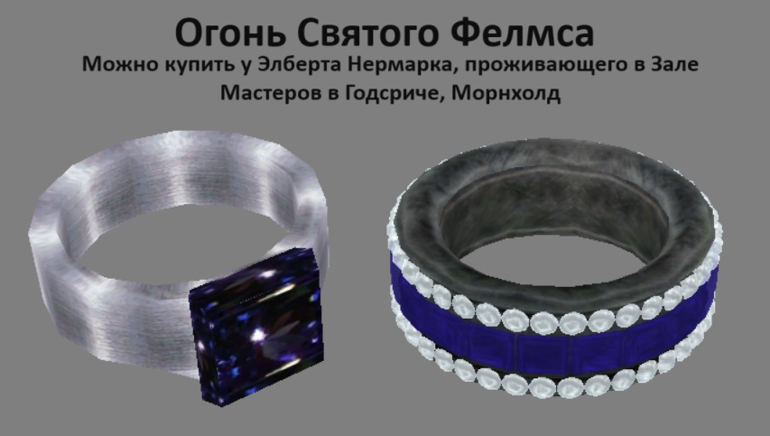 Те кольца что есть в игре меня никогда не устраивали. И моды, которые выходили на кольца — имея 1−5 классных моделей тоже не до конца меня устраивали. Поэтому и пришлось самому подбирать все, обыскивая Морровинд, Обливион и Скайрим, ища наиболее качественные и хорошие моды, переделывая некоторые текстуры и модели, создавая некоторые образцы с нуля и заняться этим сборником. Итак — 162 новых уникальных кольца заменило все кольца что были в игре. Все вы можете видеть на скриншотах. Кроме колец единственное изменение — добавление в Гильдию Магов Балморы в продажу кольцо Запора Фенрика и кольцо возврата, которые не были помещены в игру в оригинале, но в самой игре были.