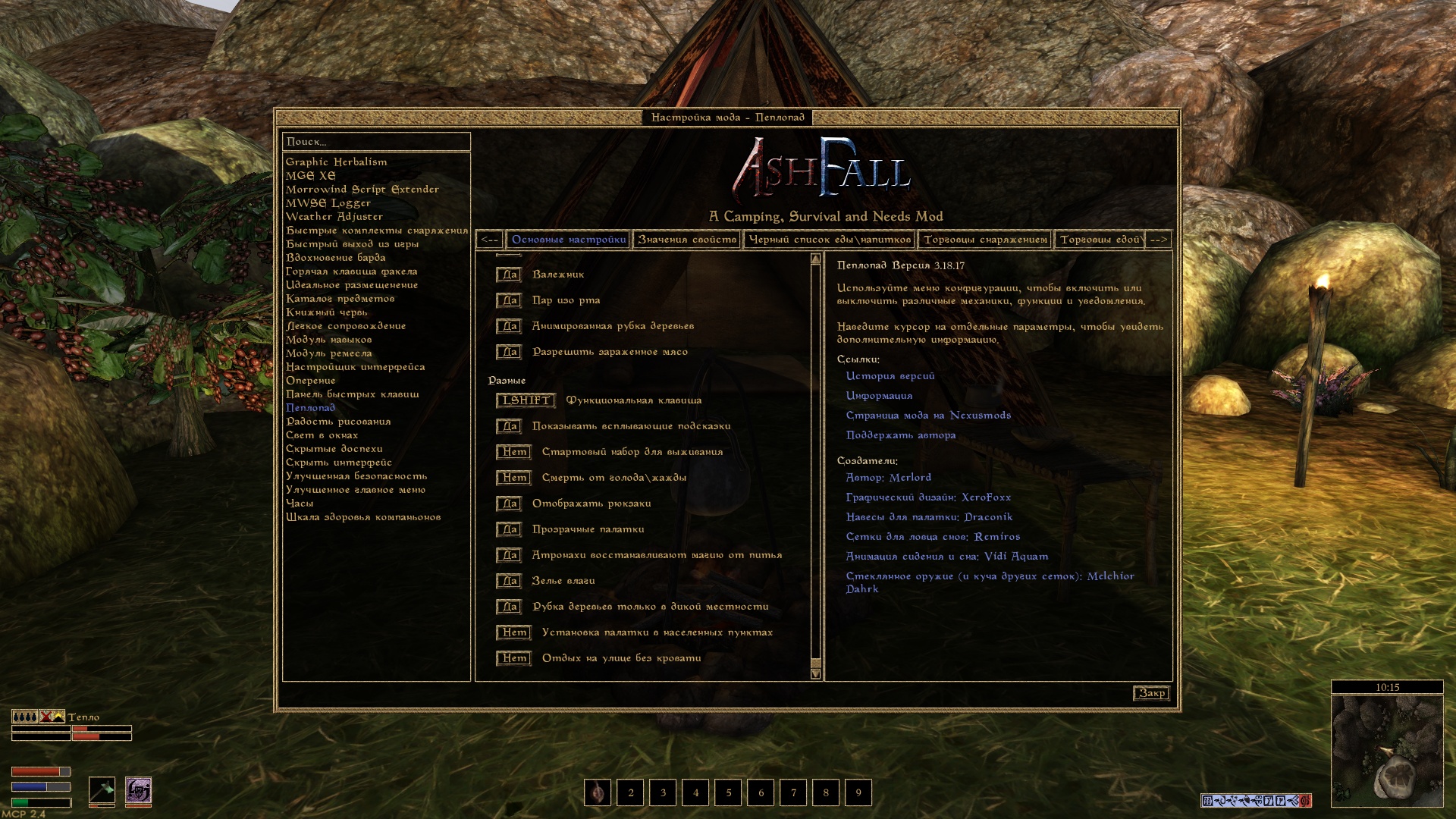 Пеплопад - мод о выживании в лагере и базовых потребностях.