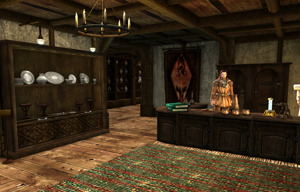 На площади Эбенгарда обновился салон заморских товаров. Теперь тут происходят события. Не все сразу. Общайтесь с обитателями салона.