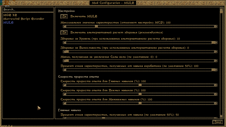 Перевод мода MULE - Mort's Ultimate Leveling Experience