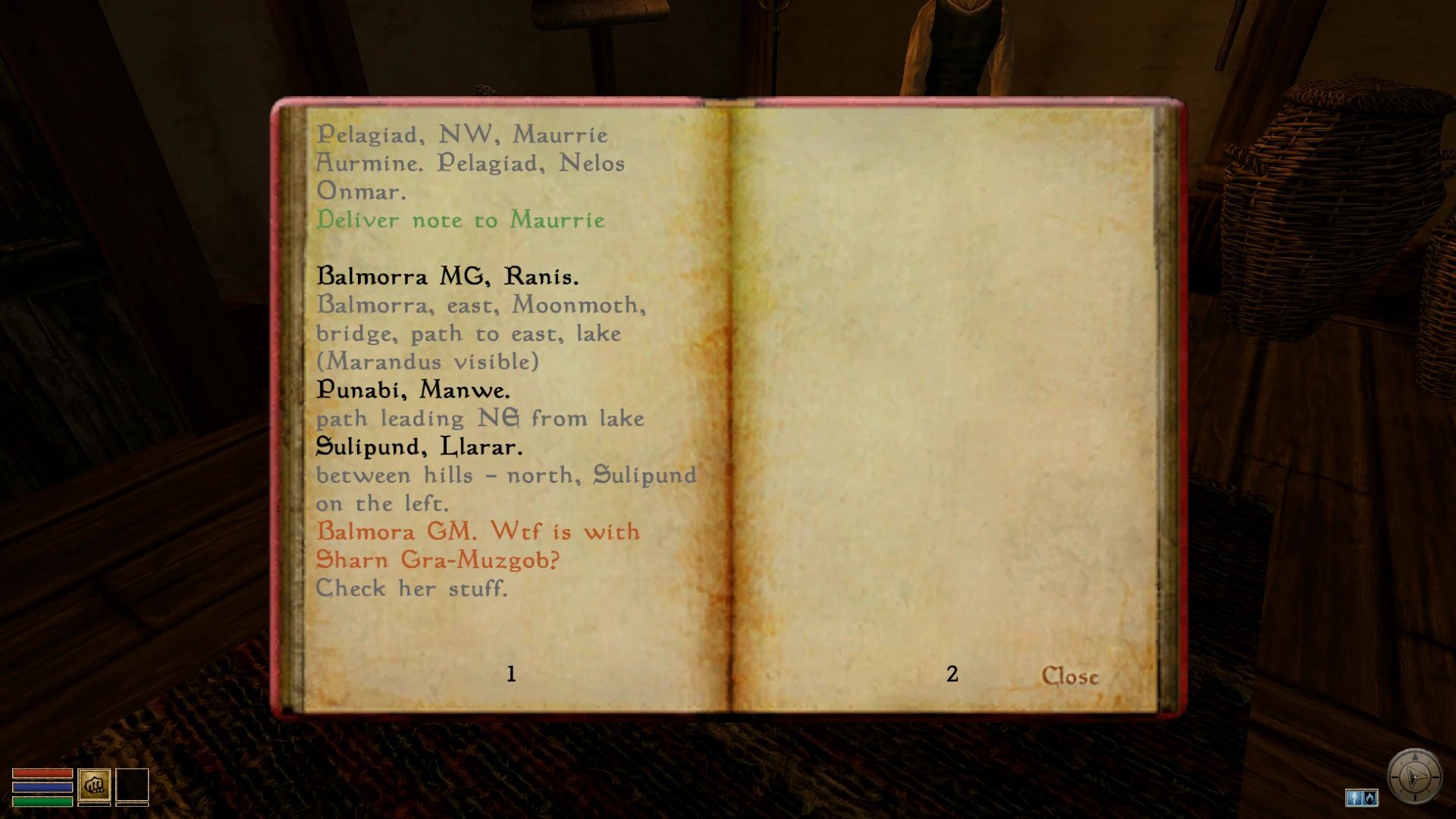 - Книга в кожаном переплёте: У Джобаши (город Вивек), Ползуна, Грязекраба-торговца. Пополняется каждые 2 недели.