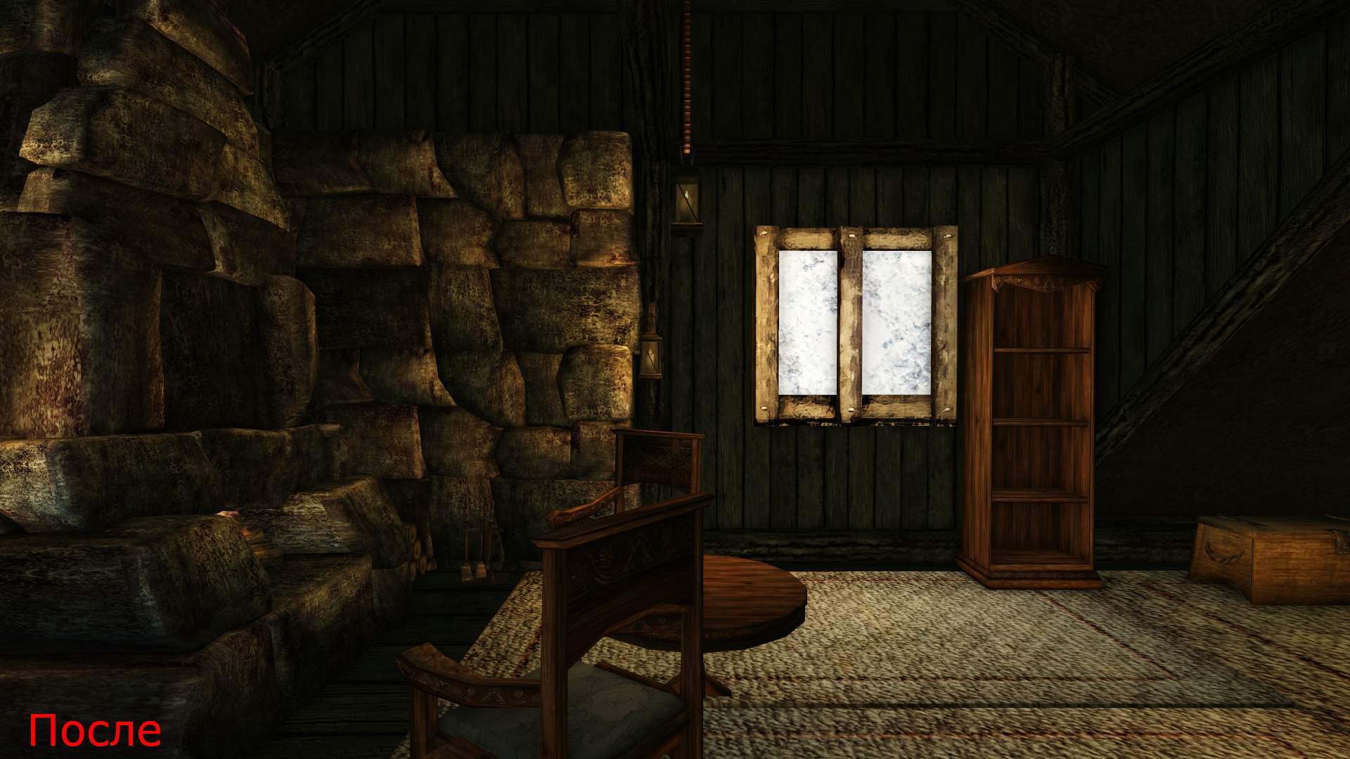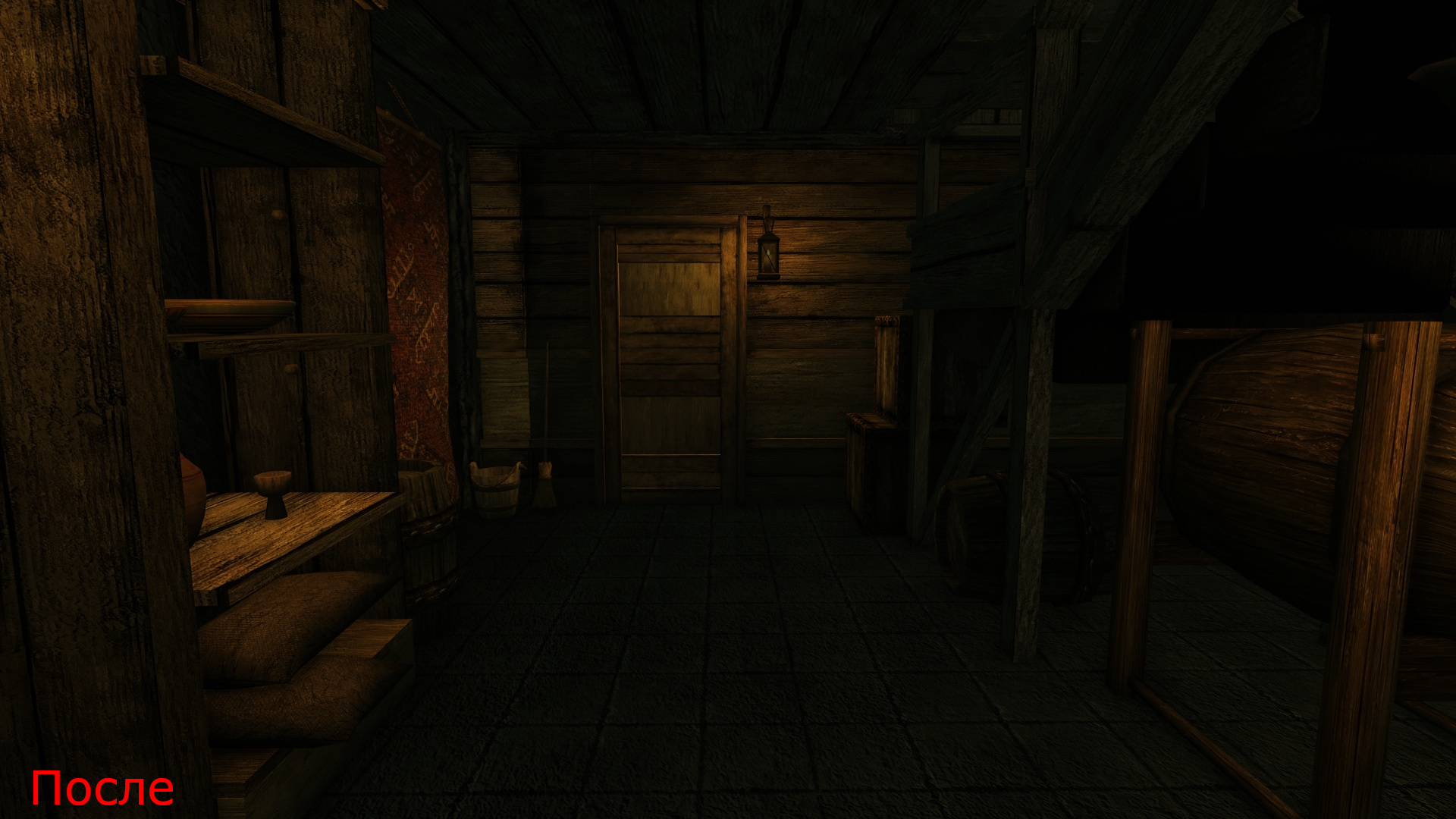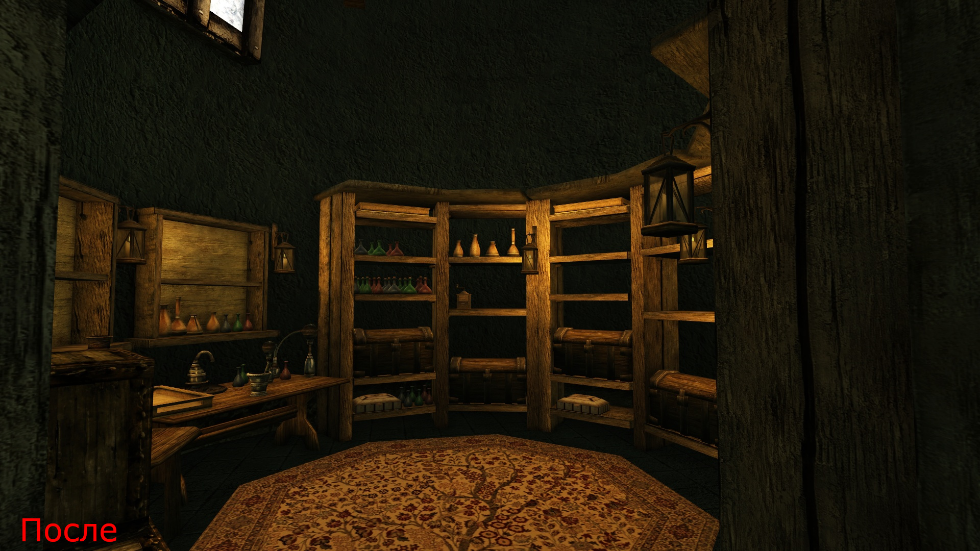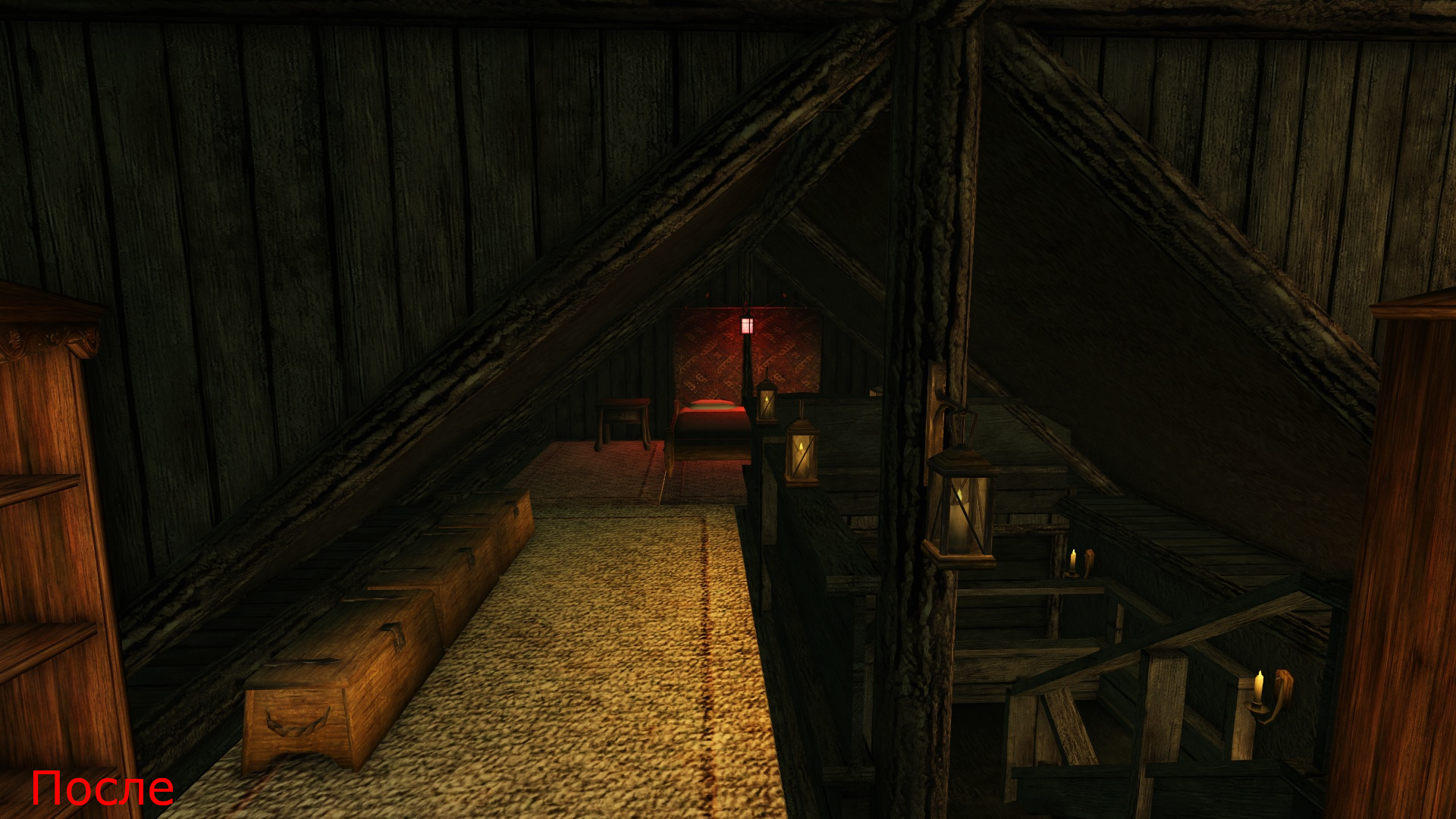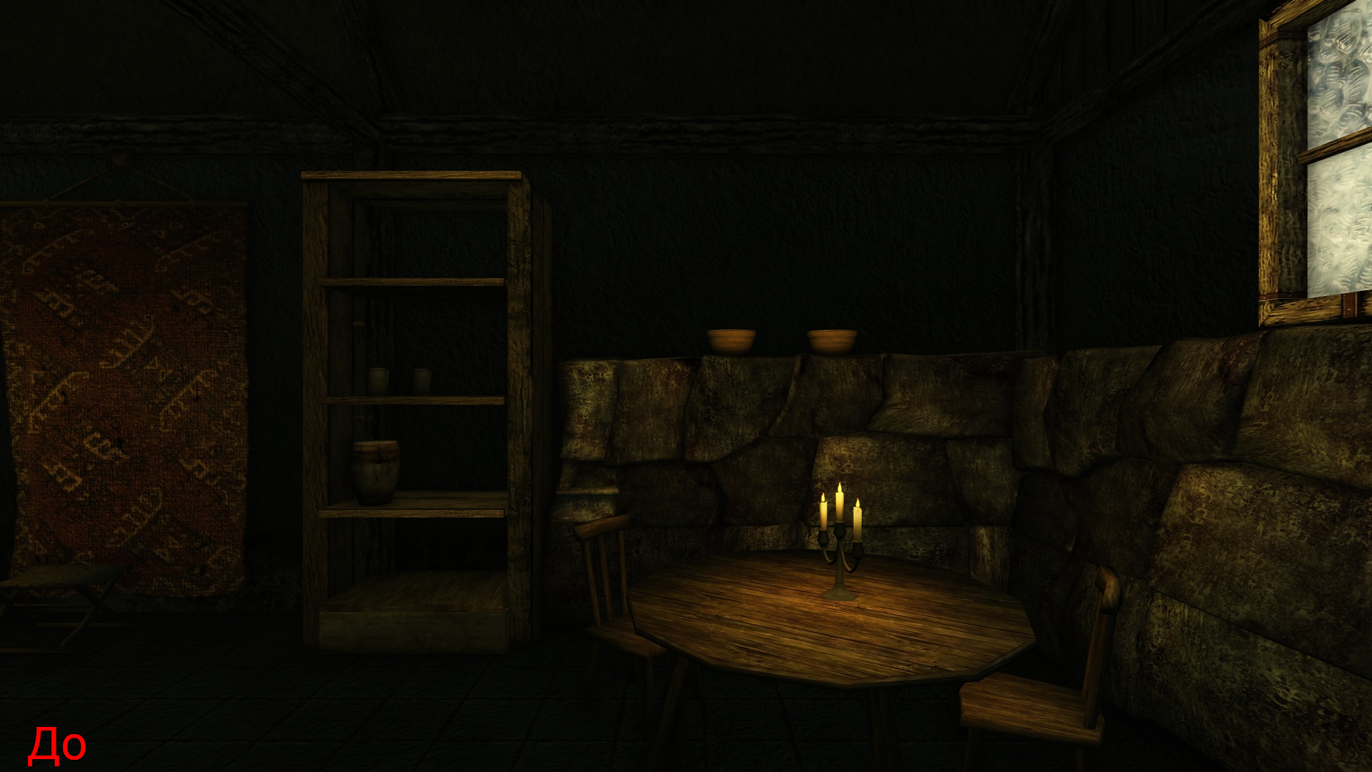 Все источники света, не имеющие физического источника, были удалены, вместо них установлены дополнительные лампы и свечи в необходимых местах.