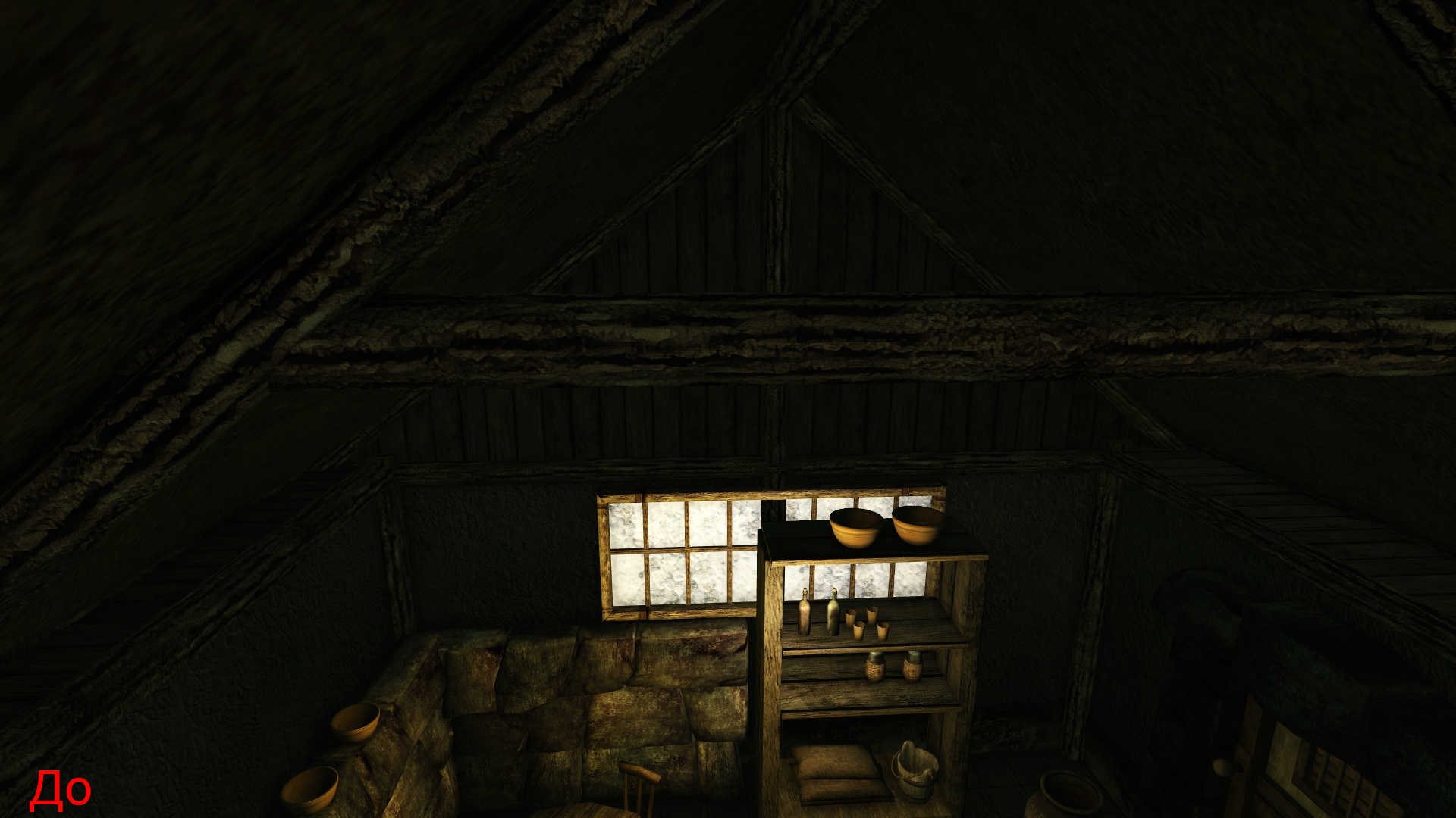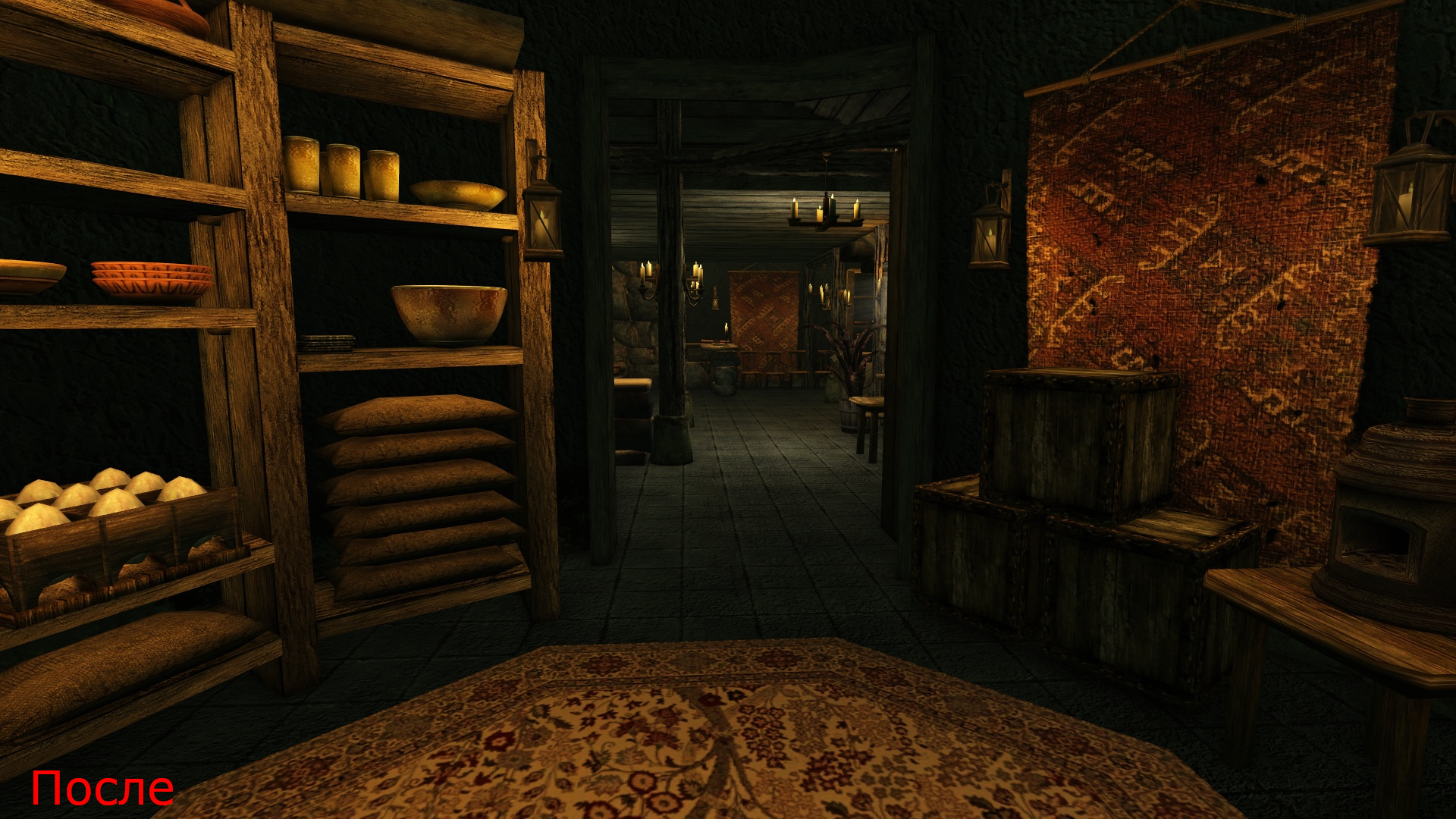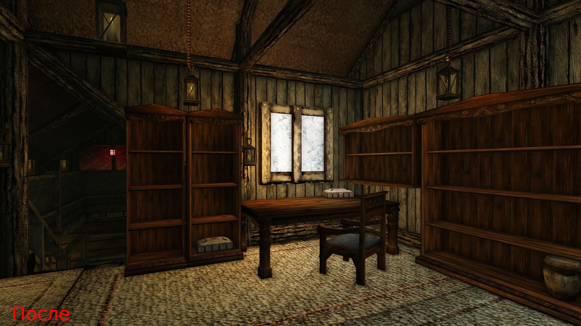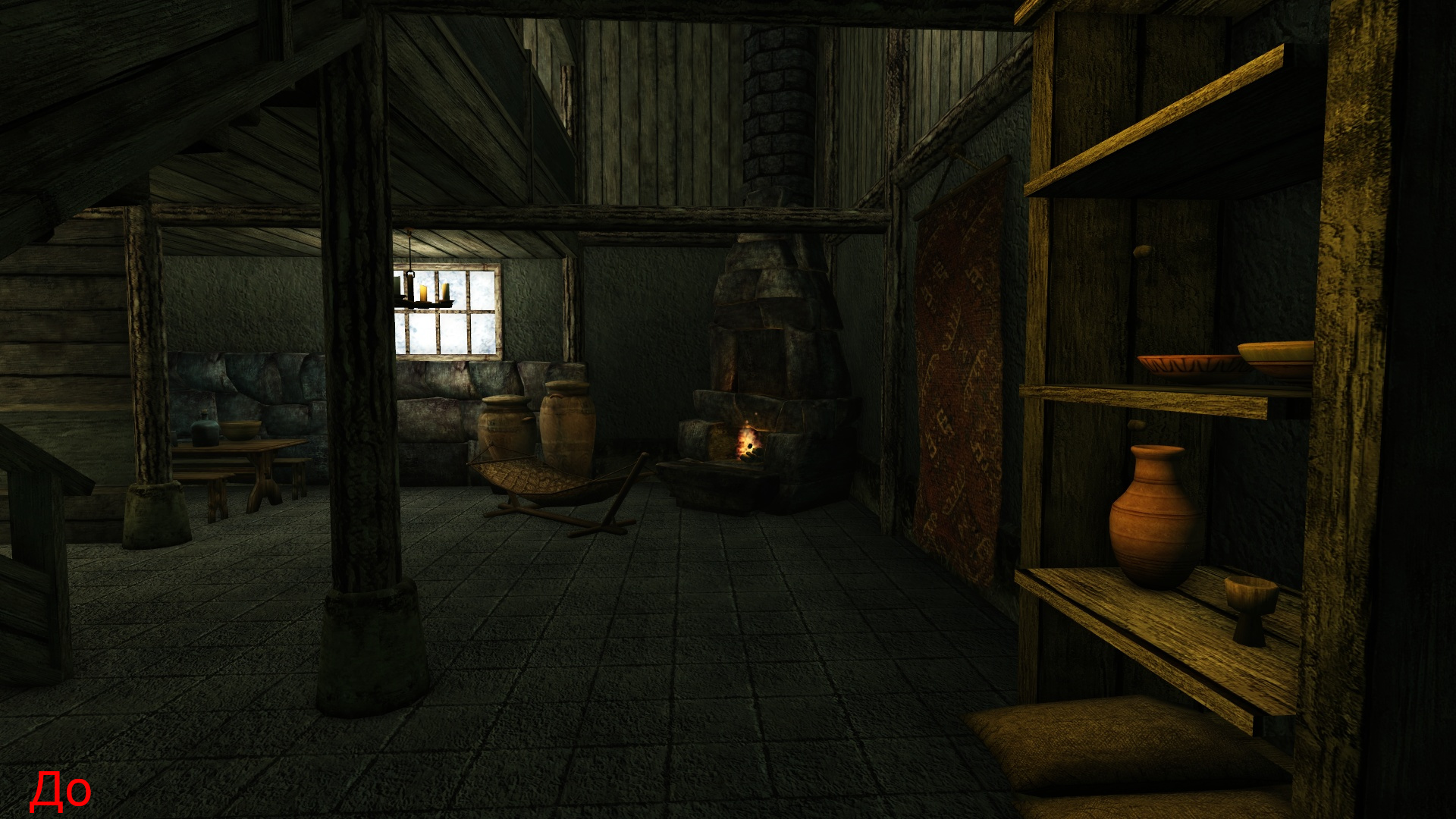 Все источники света, не имеющие физического источника, были удалены, вместо них установлены дополнительные лампы и свечи в необходимых местах.