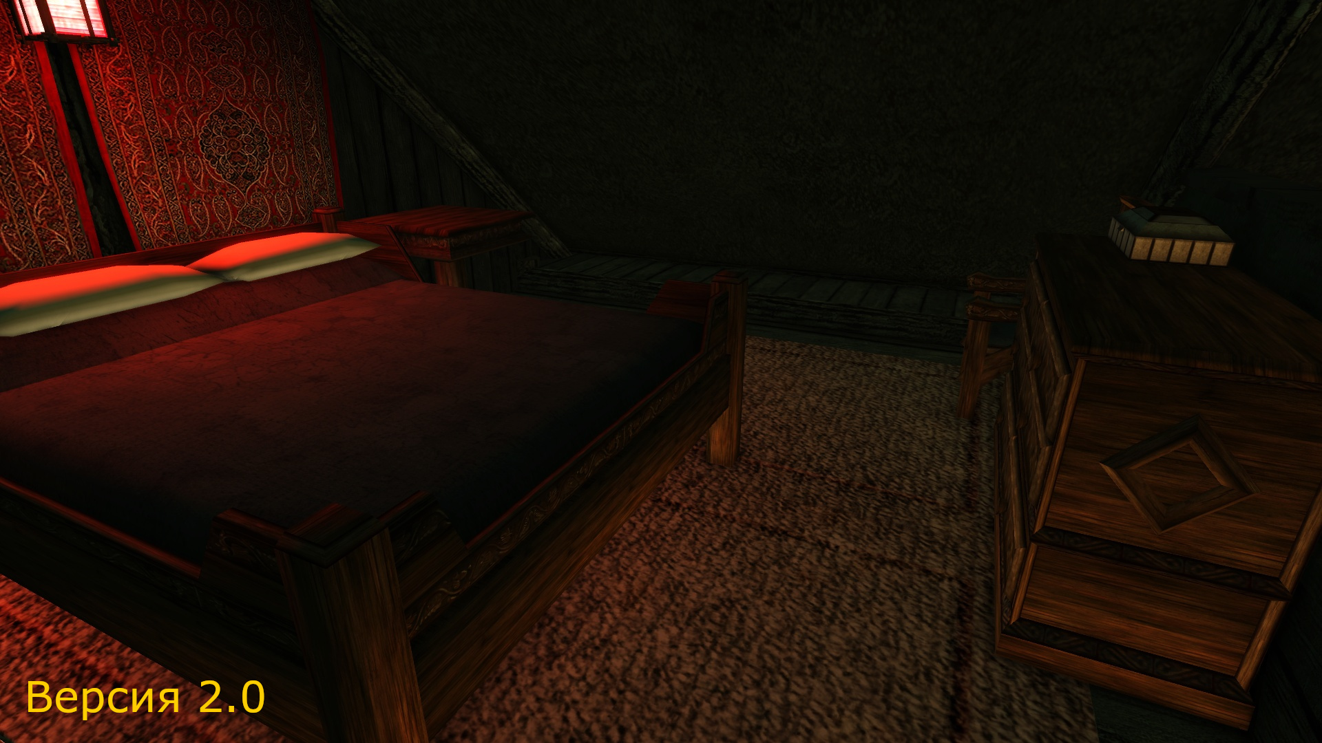 - кровать с комодом и сундуками переехала в темную зону в "дальний угол".