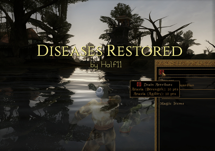 Ваш персонаж когда-либо заражался Зелеными спорами? Или каменной подагрой? А может быть, Язвой мозга? Скорее всего, нет. Хотя в описаниях этих заболеваний в игре говорится, что их можно подхватить от различных существ, но по факту в игре они не назначены никому из них. Однако эти заболевания есть в Construction Set, но Bethseda почему-то решила исключить их из игры. Этот мод восстанавливает болезни, назначая их соответствующим существам и исправляя некоторые другие несоответствия исходя из игровых диалогов.