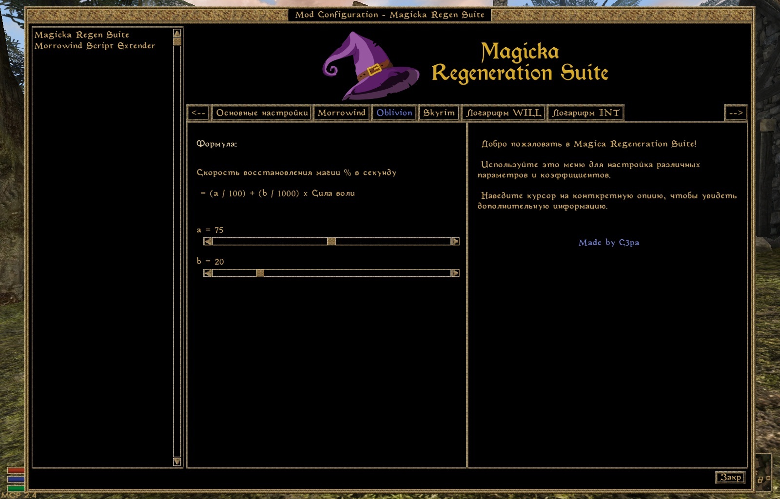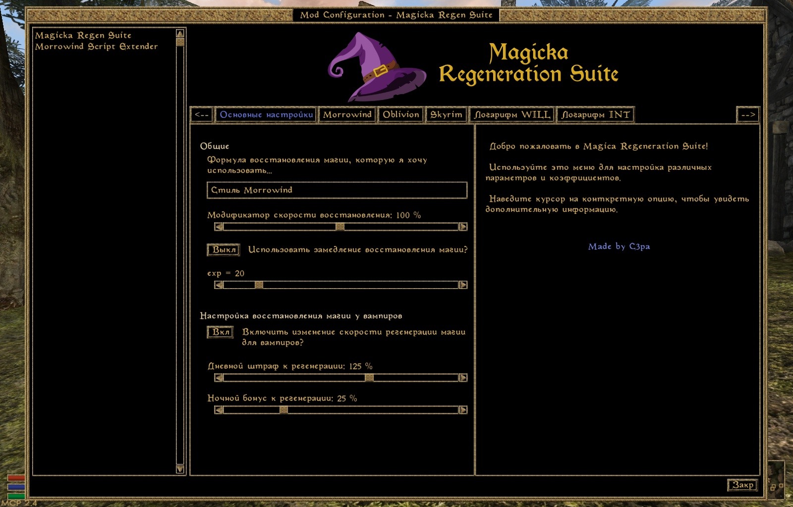Не используйте этот мод с другими модами, добавляющими восстановление магии.