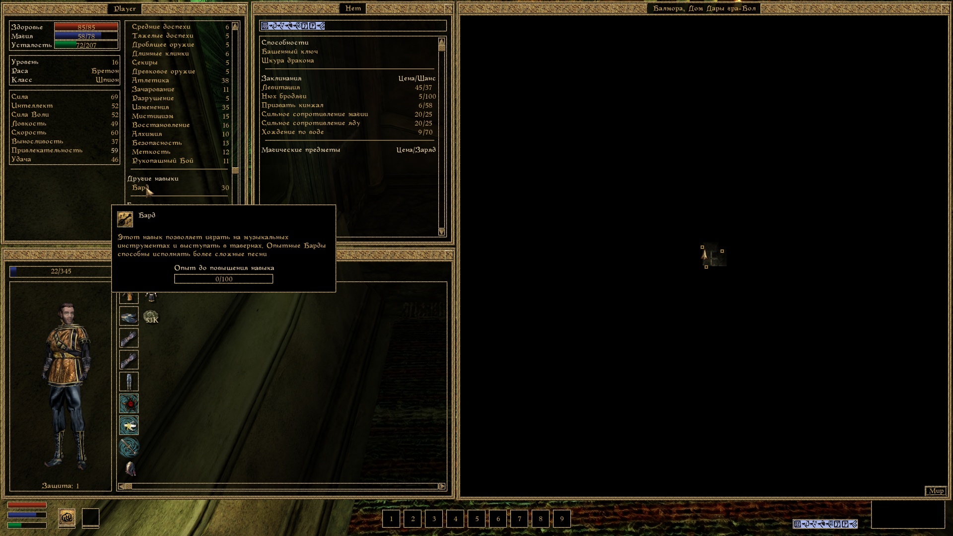 Для того что бы играть нужно найти или купить лютню, а так же выучить песни. Учиться нужно у других бардов, которые обычно находятся в трактирах.