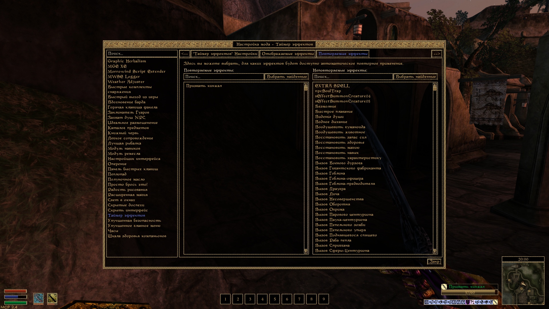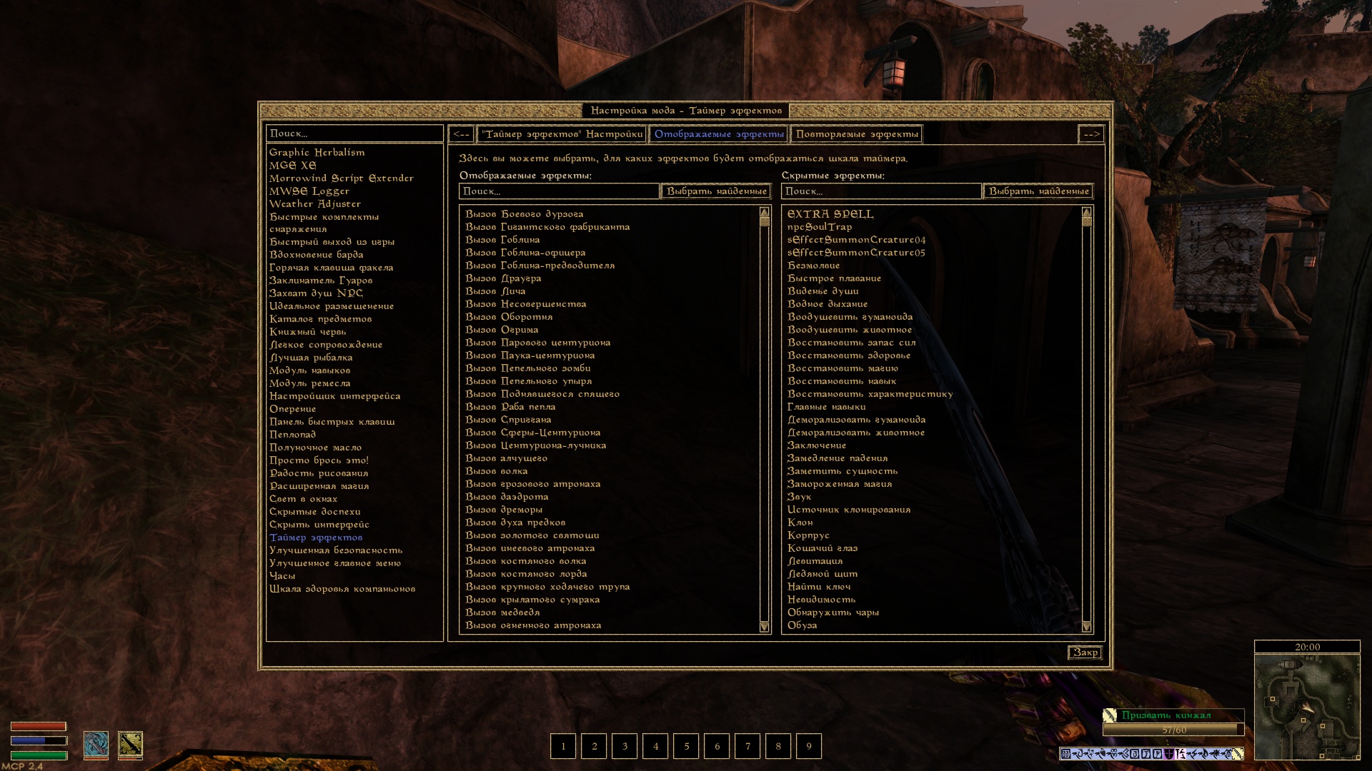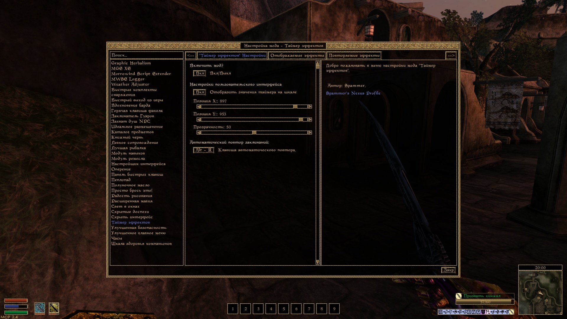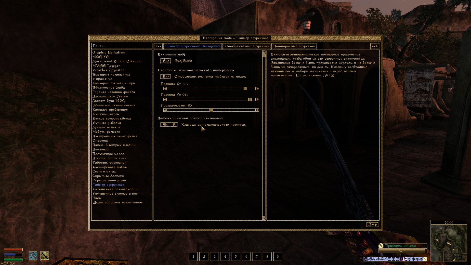 - меню настройки мода позволяет вам настраивать множество параметров: положение шкалы на экране, её прозрачность, эффекты, таймер которых вы хотите видеть на экране.