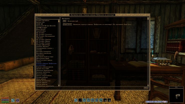 Клавишу можно назначить в меню настройки мода. По умолчанию: Caps Lock.