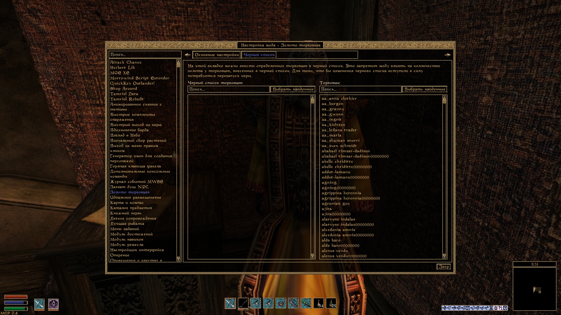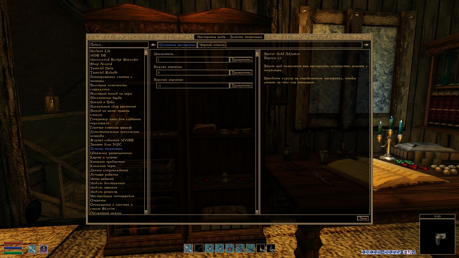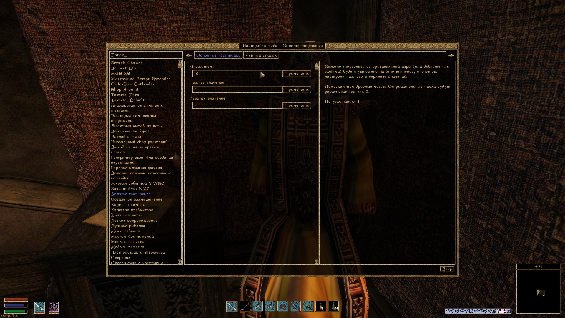 Если вы торговали с кем то в игре, то, когда вы меняете настройки, изменения не вступят в силу для этих конкретных торговцев, пока их золото не обновится (24 игровых часа в не модифицированном Morrowind).