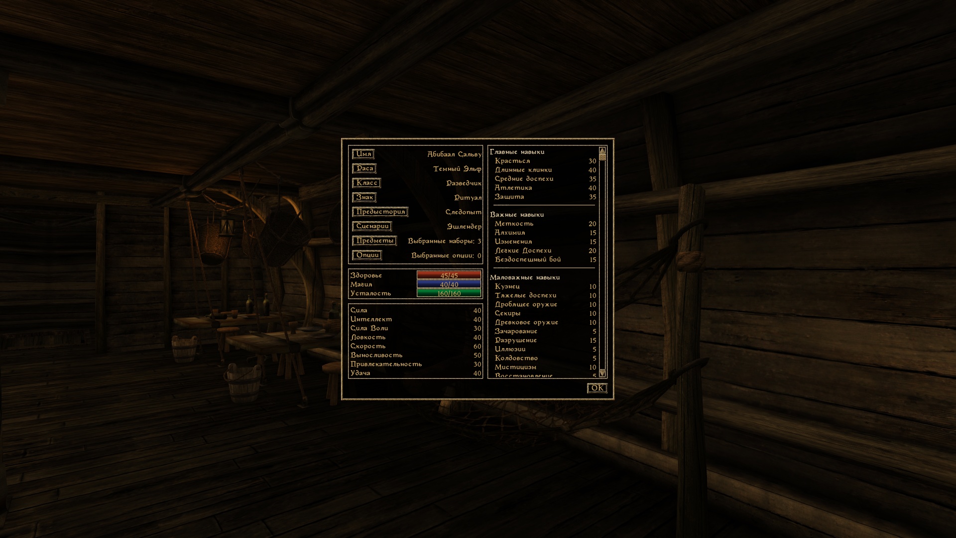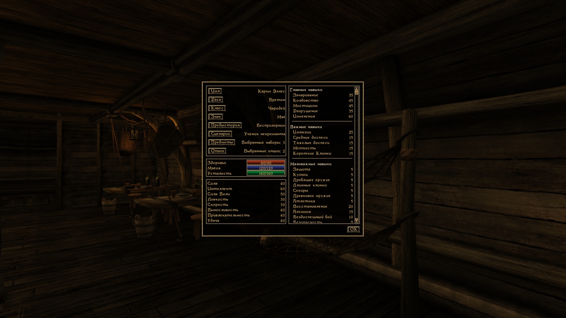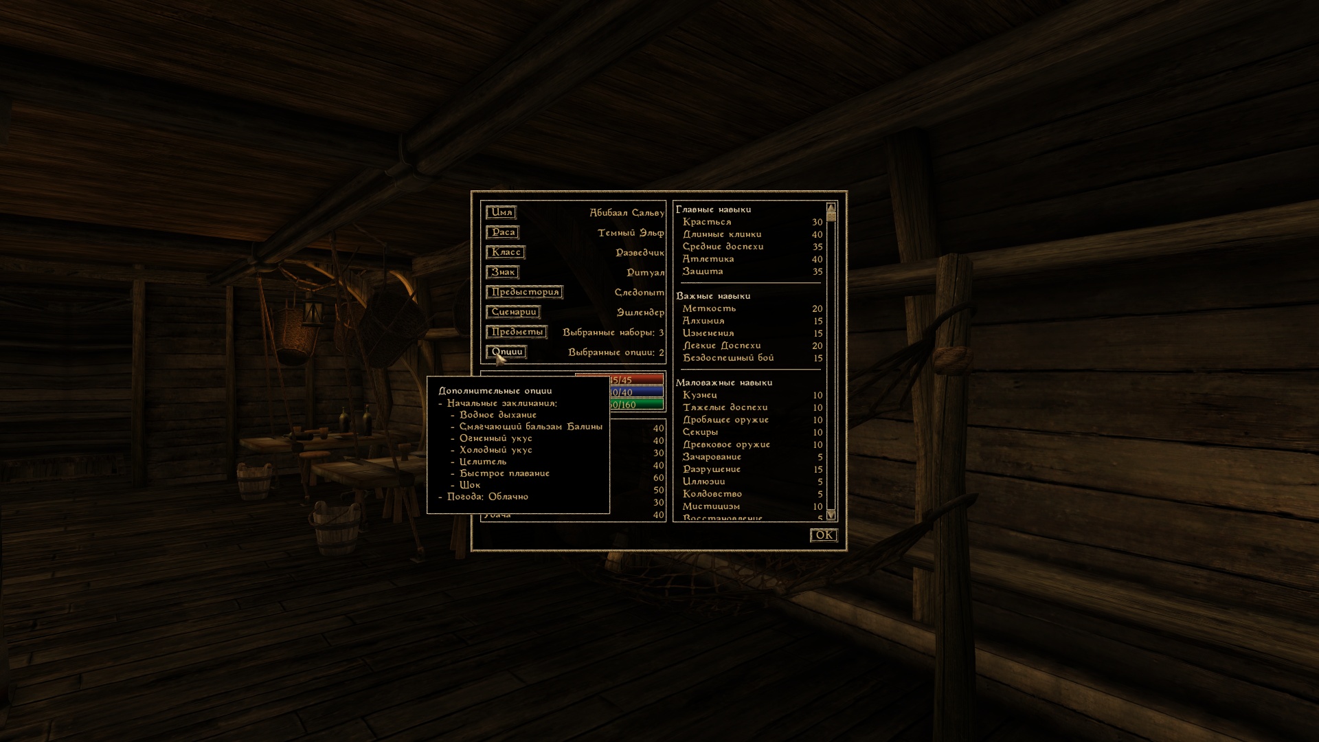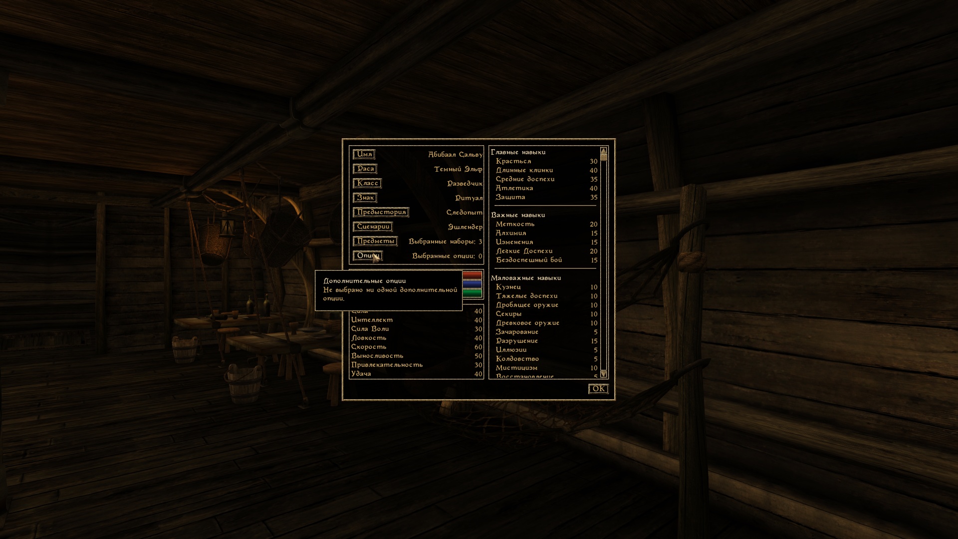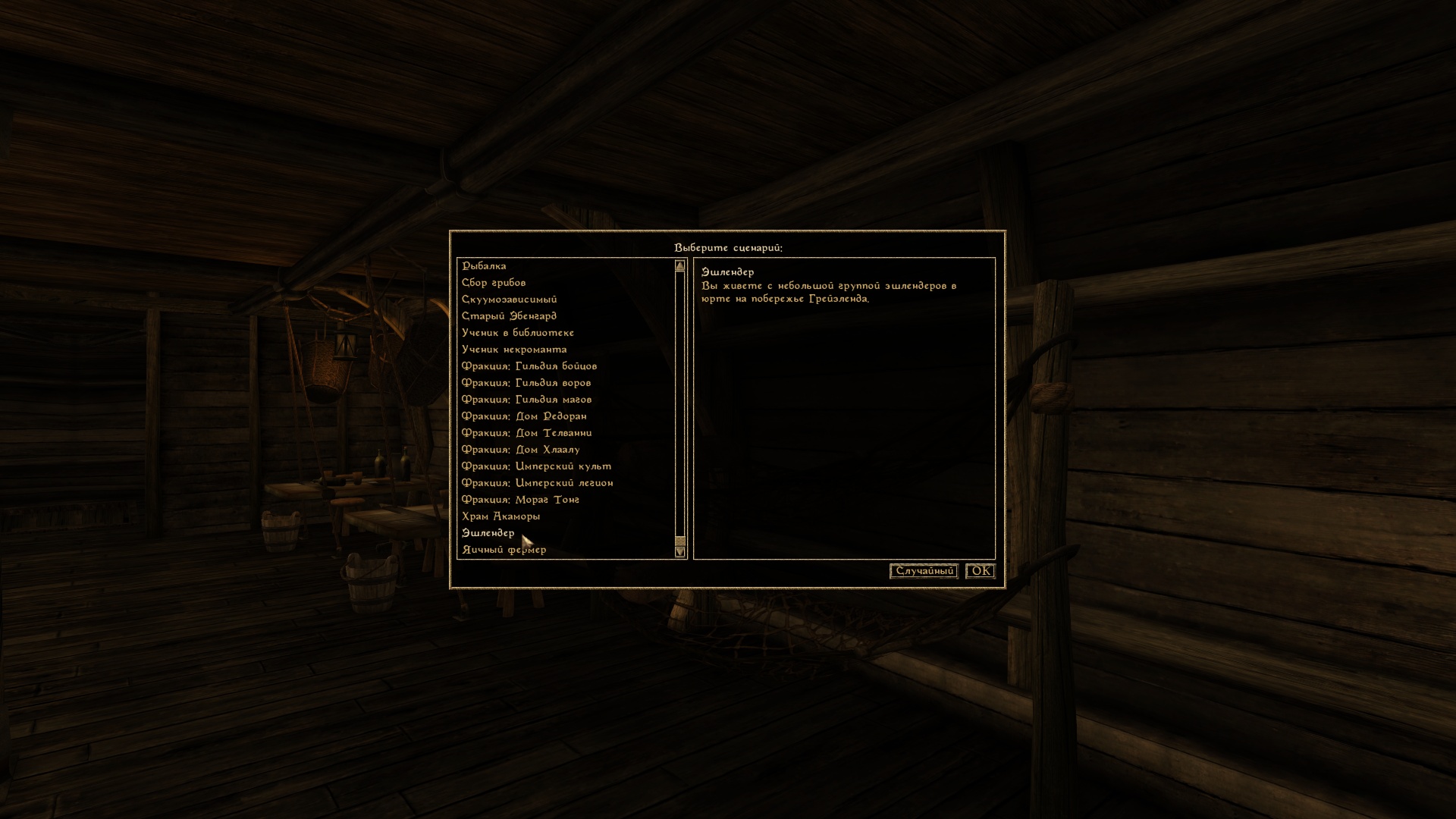 Альтернативный старт игры. Более 60 сценариев (В том числе для Tamriel Rebuilt Ru 24.12). Процесс настройки оптимизирован и упорядочен. Полностью настройте своего персонажа или доверьтесь случаю.