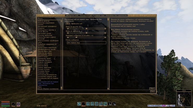 Дополнительные возможности при установке мода "Улучшенный вид от первого лица":