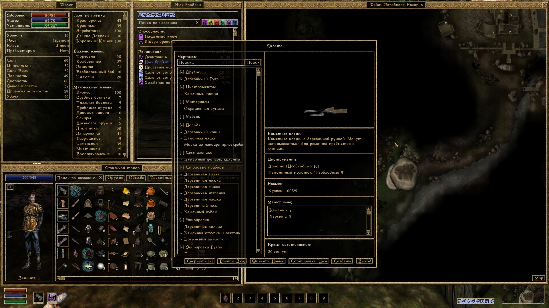 Для изготовления каменных клещей вам также понадобятся ремонтный молоток и долото, а также 2 шт. камня и 3 шт. дерева. Чертеж доступен в меню долото.